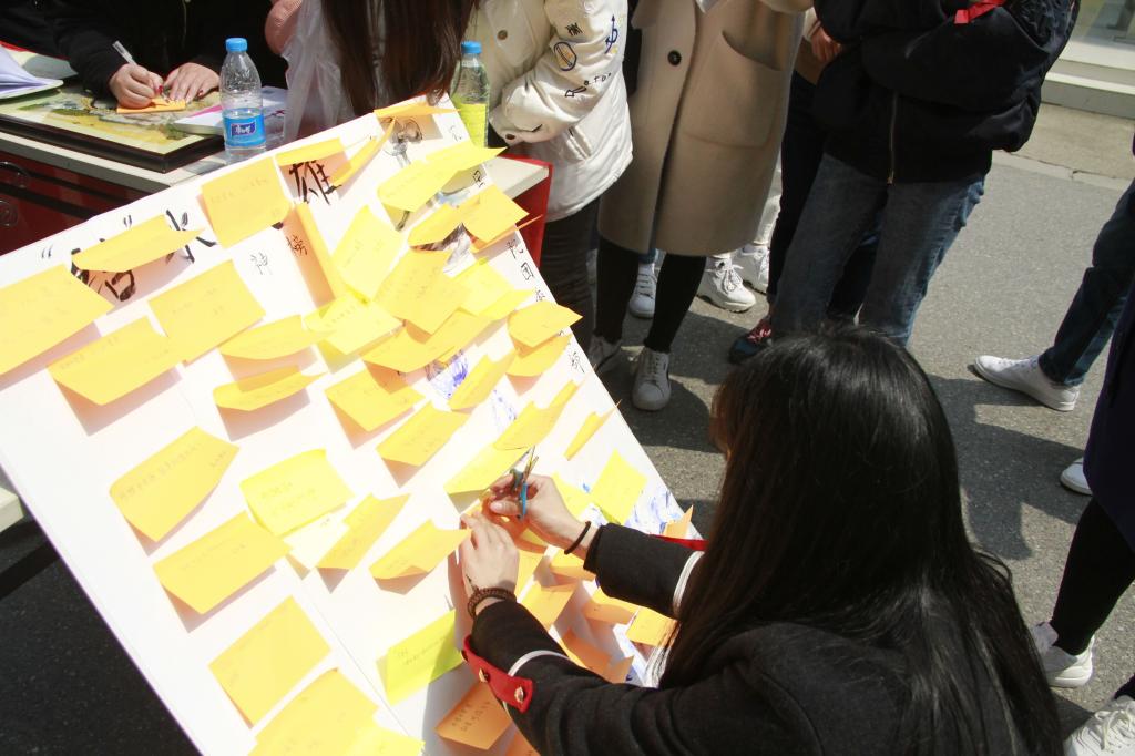 活动中,同学们通过参与节水护水知识竞答、节水治污妙计收集、节水英雄榜张贴等环节认识到节约用水,保护生态环境的重要性。现场还设置了简易净水装置,让同学们体验用石棉、鹅卵石、细沙、活性炭等材料将“污水”变为“清水”的过程,增强同学们生活污水循环再利用的了解。为了吸引过往同学参与,轮滑社、吉他社、五谷杂粮粘贴画等社团也各展所长,现场气氛热烈。