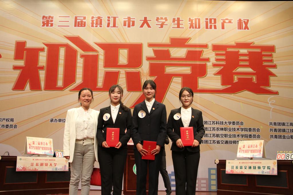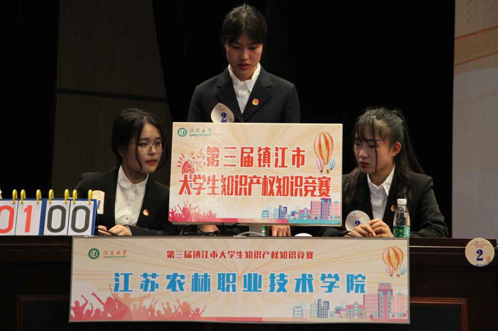 我校团委经前期校内选拔赛选拔出风景园林学院陈潇涵、茅山校区章晓蔓、农学园艺学院张丹阳三名学生代表参加竞赛,她们在赛场上认真答题,灵活应变,经过个人必答题、抢答题、风险题三个激烈的答题环节,最终荣获镇江市知识产权知识竞赛二等奖。