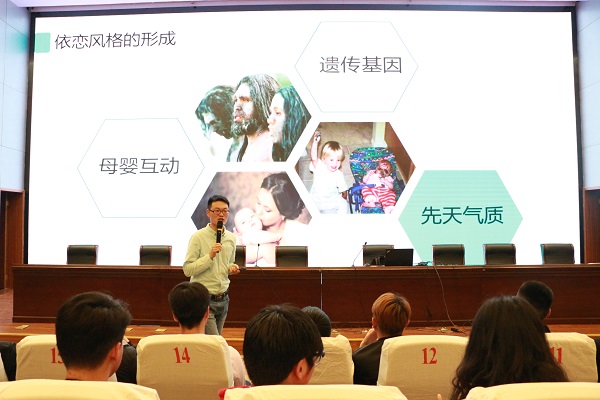 曲海涛老师首先介绍了依恋心理的三种特征,以及这三种特征的表现方式。接着分析了形成这三种依恋表现的原因。通过让同学们完成一套测试题,了解自己,并介绍了“成人依恋风格”。本次讲座主要针对当前大学生的感情问题,旨在通过此次活动在大学生群体中宣传、普及心理健康知识,帮助建立良好的相处模式,并初步了解自己,有效提高心理素质。