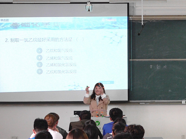 4月25日下午,教育教学督导处主办的“每月一讲”公开示范课在J1-A204精彩上演,茶与食品科技学院的刘凌老师引领师生零距离接触《基础化学》之“炔”的世界。