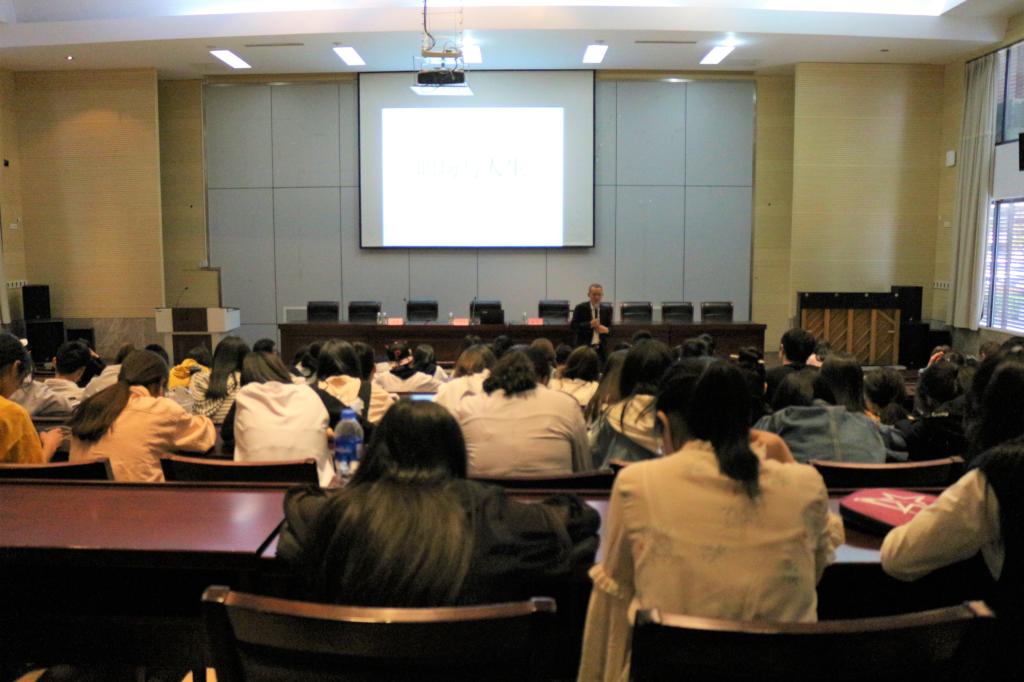 张晓程总经理结合自身经历与同学们分享职场中的经验,从第一份工作的重要性,对职业、职场积极心态的重要性,到职场选择的重要性,有什么样的选择,就有什么样的人生,鼓励同学尽早合理规划职业和人生目标,不断追求,挑战自我,实现自我。