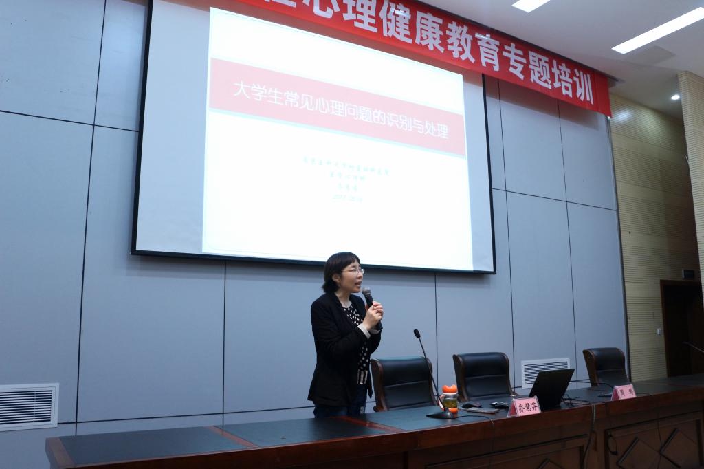 5月16日下午,永利官网心理健康教育中心在研发楼报告厅举办了“大学生常见心理问题的识别”专题培训,本次培训由南京脑科医院的乔慧芬主任主讲,来自本部七个二级学院及茅山校区的90多名辅导员、班主任参加了此次培训。