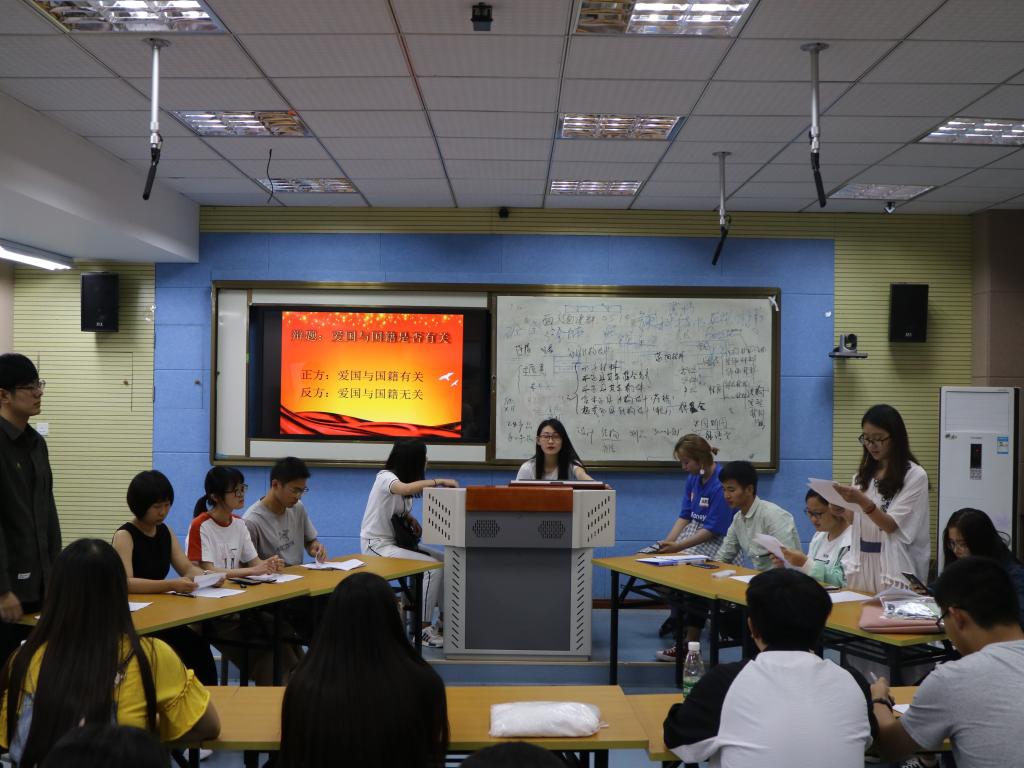 活动伊始,主持人首先带领大家回顾了1925年五卅运动的全过程,让同学们重温了历史,随后进入本次活动的重要环节——“爱国与国籍是否有关”辩论友谊赛。比赛中,辩手们旁征博引、妙语连珠,引用众多人、物、事来论证各自所持观点,在自由答辩中,双方更是针锋相对,或一针见血,或循循善诱,一次次将辩论赛推向高潮,最终反方“爱国与国籍无关”完胜。