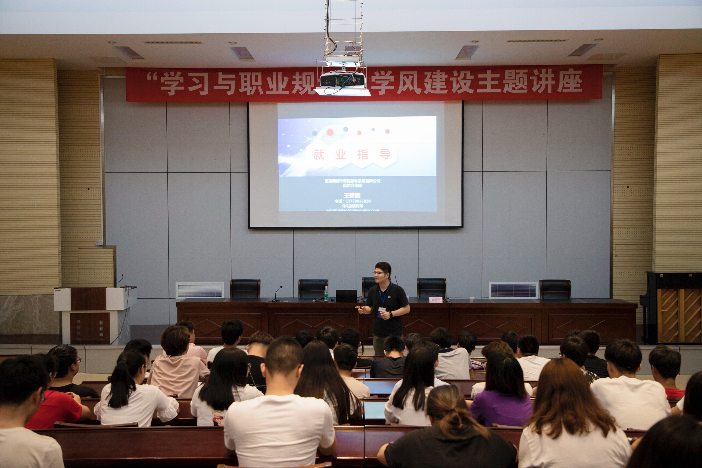 为了帮助学生树立学习目标、建立长期规划,6月14日,信息工程学院在研发楼报告厅举行“学习与职业规划”学风建设主题讲座。本次讲座邀请南京网博计算机软件系统有限公司职业规划顾问、职业素养讲师王碧霄老师主讲,学院近200名学生参加了此次讲座。
