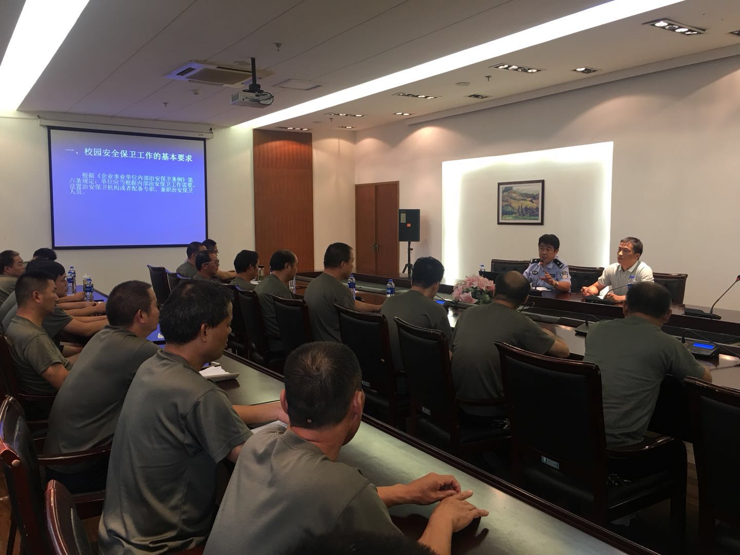 为进一步加强保安队伍建设,切实提高保安人员执勤能力,着力打造一支“拉得出、打得赢”的高素质校园保安队伍,针对学校实际情况和安全保卫工作特点,安全保卫处组织在校40余名保安队员在暑期进行了为期10天的业务技能培训。