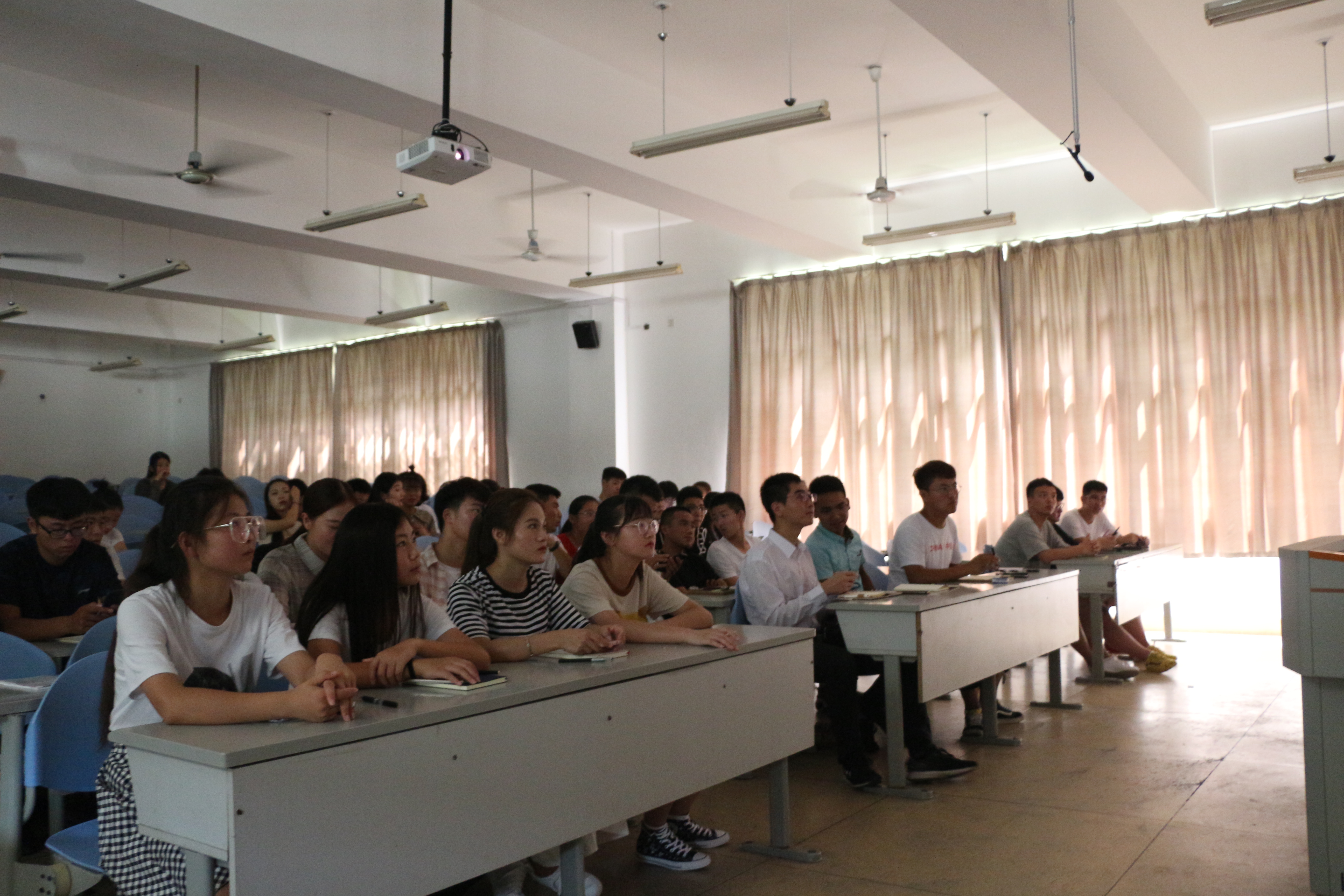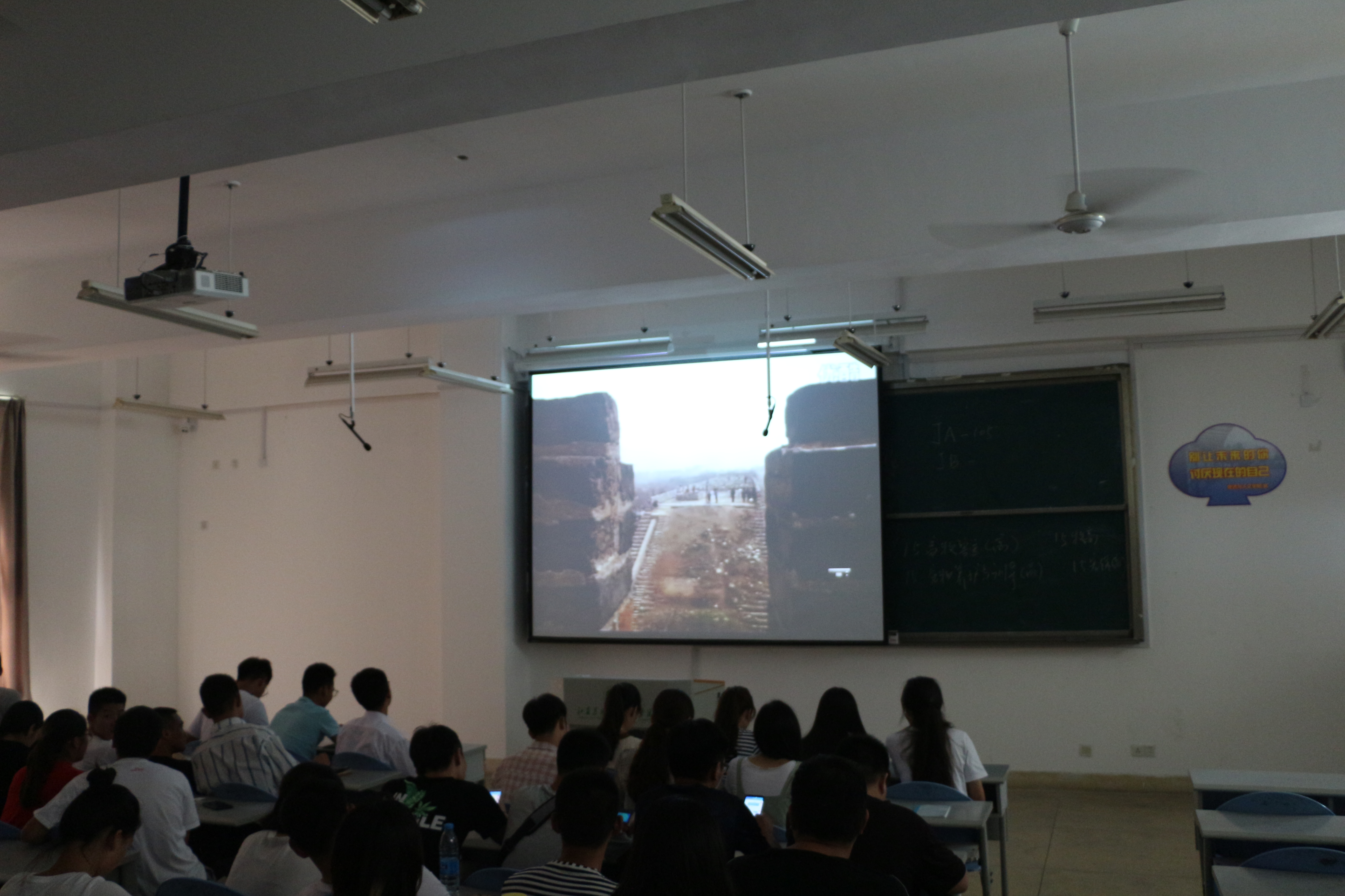 影片宣传活动分为两个部分,首先由同学讲诉历史,史实展现了中国人民不畏强暴,不甘屈辱的自强精神,万众一心,众志成城的团结精神。第二部分同学们认真观看影片。重忆历史,牢记使命。