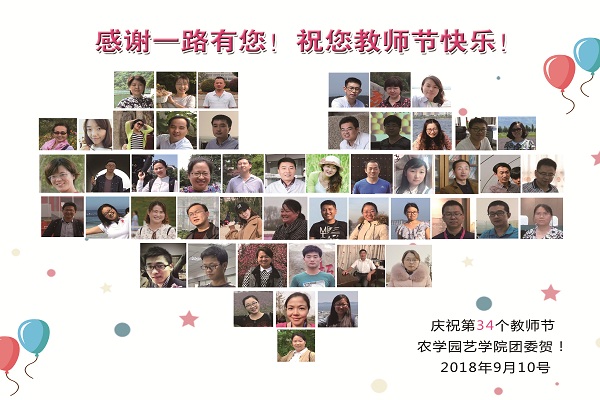 9月10日,农学园艺学院收集了全院老师的照片,经过精心设计,拼接成一张爱心合照,并制作成精美的相框照送给老师,为老师庆祝属于他们的节日,表达全体学生最真挚的祝福和感恩。