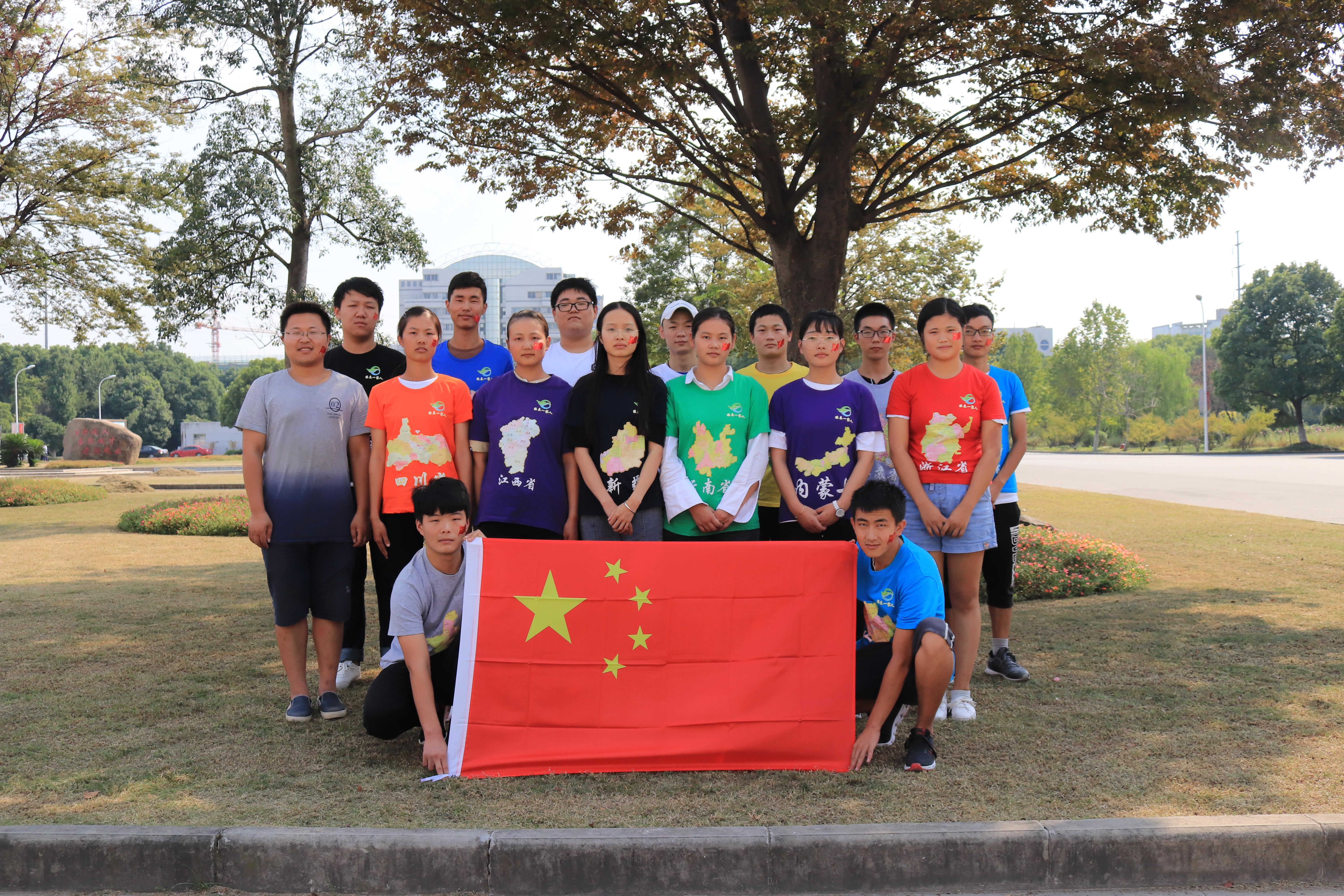 在“国旗在飘扬”升旗仪式正式开始后,全体师生注目着冉冉升起的国旗,大声唱着国歌,表达着无限的敬意。“我和国旗合影”环节,大家手执小小的五星红旗,在镜头前露出灿烂的微笑,来表达对祖国的热爱,传递青春正能量。在“一颗心 一双手 共绘祖国蓝图”中,新生共同拼出“中国”,寓意着祖国的发展需要我们团结一心,美好的未来需要每一个人的双手共同来创造。来自不同省份的学子们还把自己对祖国的祝福语贴在了“中国地图”的寄语板上,这些祝福语字里行间抒发着对祖国的热爱。最后,活动在新生嘹亮的口号“我以我心爱祖国 我以我行报祖国”中圆满结束。