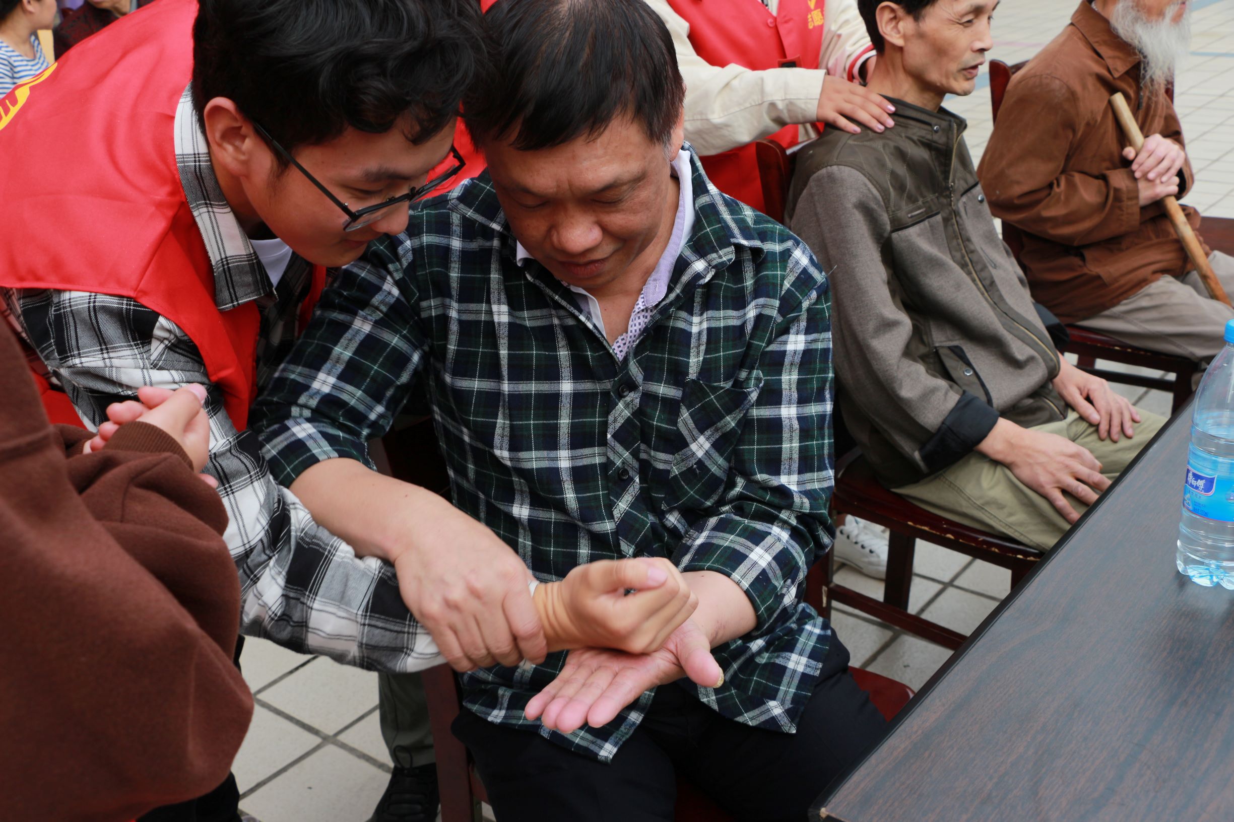 志愿者们向盲人师傅学习了推拿按摩,随着师傅的细心讲解,志愿者们细心给盲人朋友们揉肩捶背,按腿推拿起来。随后,志愿者们和盲人朋友们互动表演,一起庆祝盲人日,也呼吁更多的爱心人士关爱盲人,为他们提供更多的帮助。