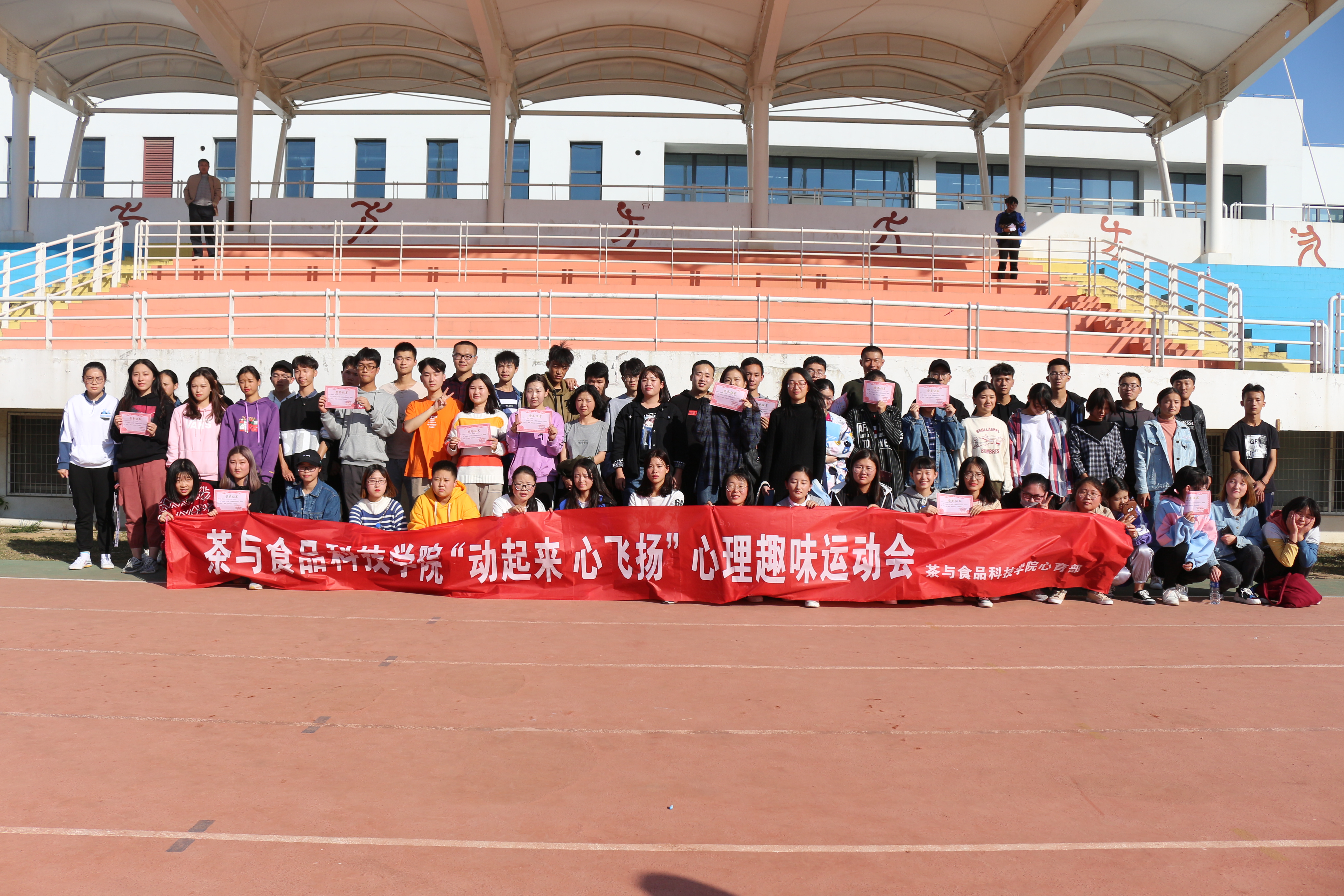 10月28日下午,茶与食品科技学院在北校区体育场举办“动起来 心飞扬”心理趣味运动会,该院心理老师主持活动,近70名同学参与其中。