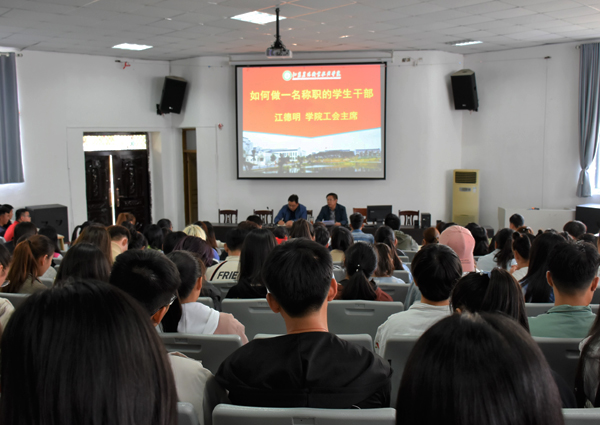 10月31日下午,茅山校区邀请院工会江德明主席为校区全体学生干部上了一堂“如何做好一名称职的学生干部”的培训课。 江主席主要围绕着坚定信念、守信为先、立身做人和正确处理好四大关系为同学进行讲解,并结合历史和国情介绍了很多党的政策和方针,强调学生干部应端正自己的态度,提高自身的品行和素养,增强同学间的凝聚力,充分发掘自身潜力,为班级同学做好榜样。