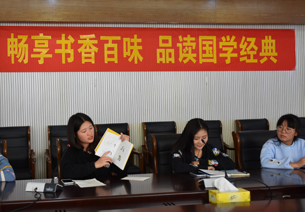 为增强校区学生对读书的热情,积极营造浓郁的校园读书氛围,11月4日下午,茅山校区举办了“书香校园——‘畅享书香百味 品读国学经典’”文化活动。 此次活动分为书籍分享、观影赏析、文学游戏闯关三个环节。在书籍分享和观影赏析环节中,同学们讲述了近期读书的情况,并分享自己所读书籍的心得体会。在文字游戏闯关环节中,同学们通过“步步为赢”和“一站到底”等活动感受中华汉字的魅力,体会中华文化的博大精深。