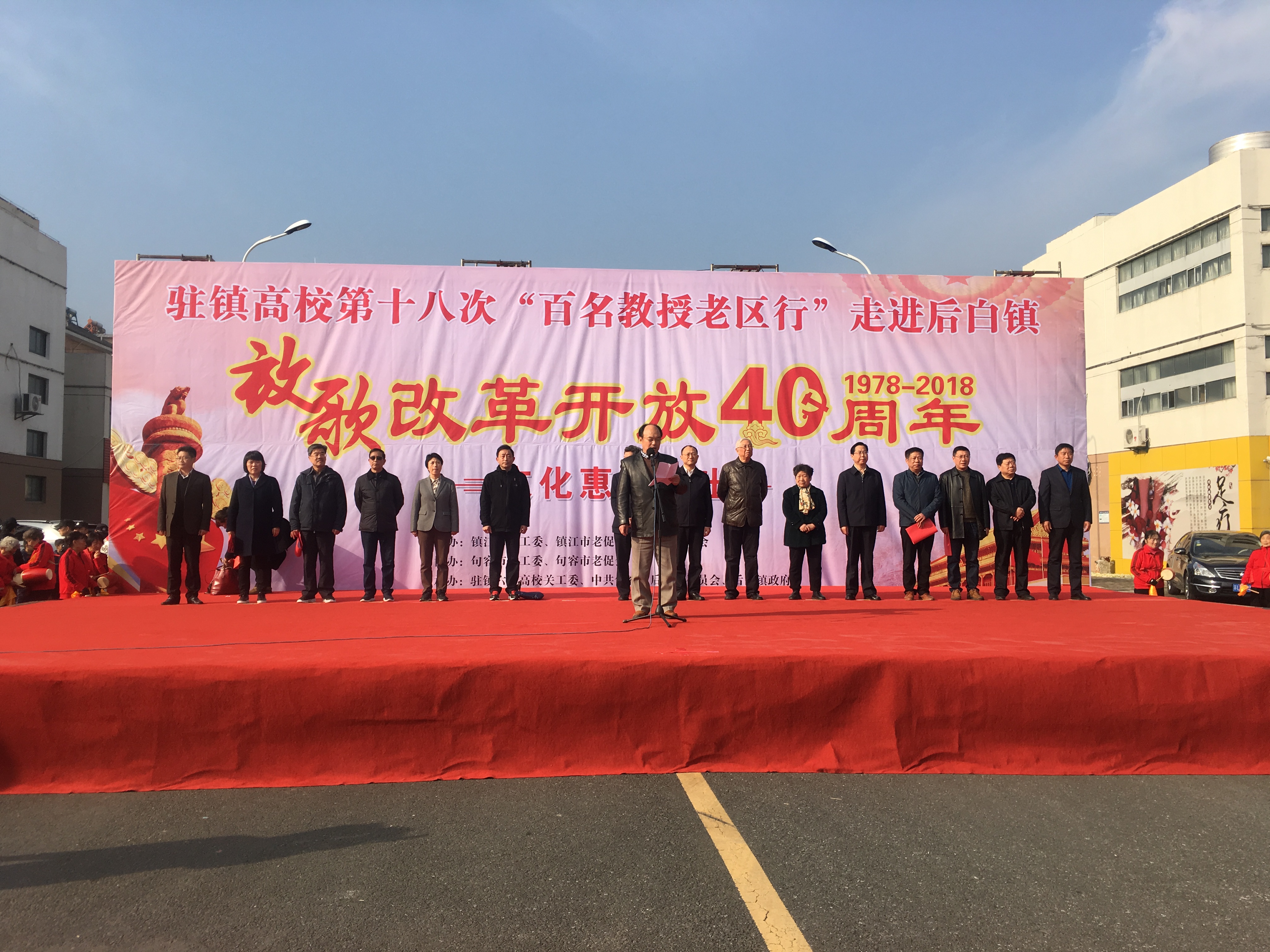 11月24日上午,由镇江市关工委、老区开发促进会、总工会主办的驻镇高校第十八次“百名教授老区行”活动,在句容后白镇举行启动仪式。