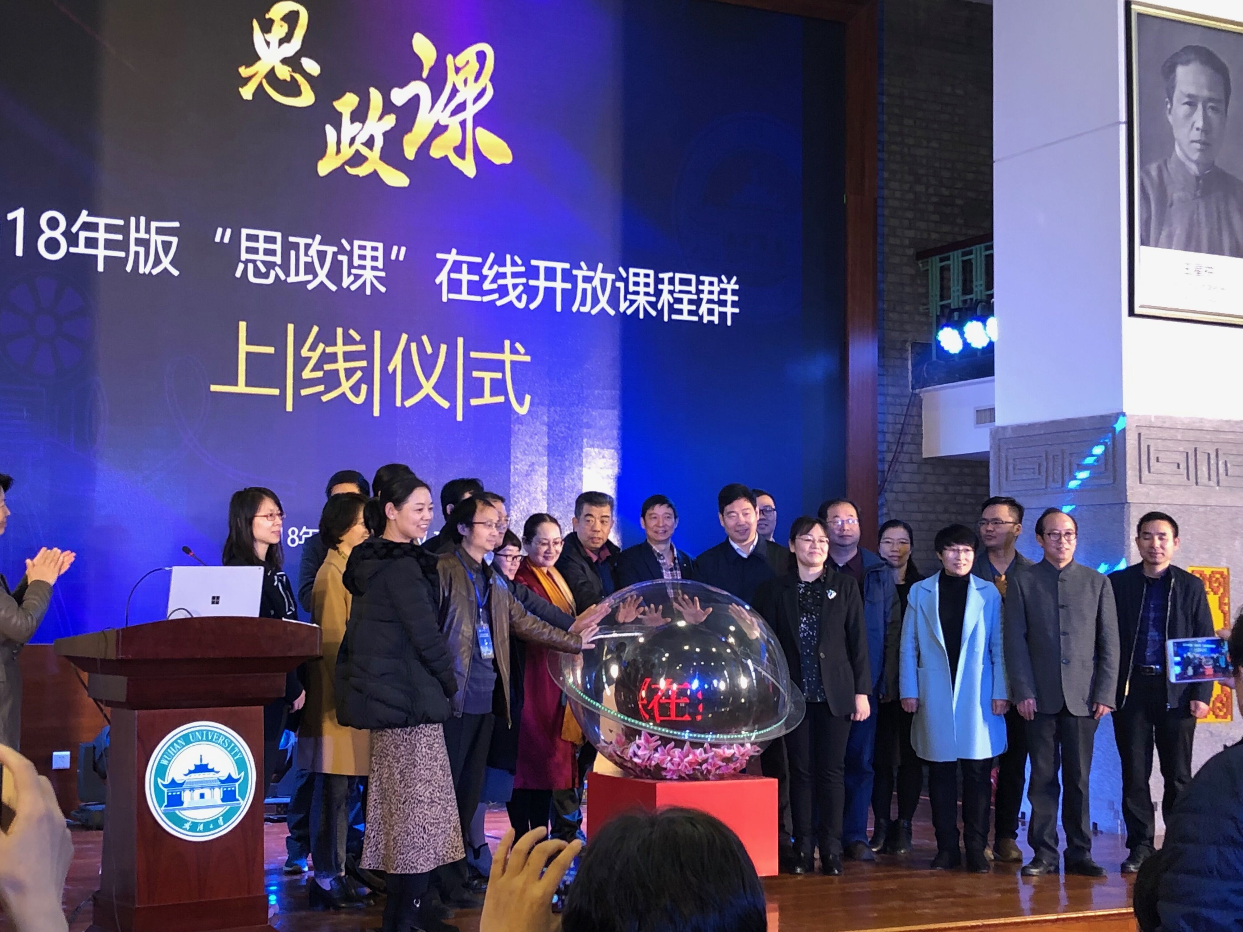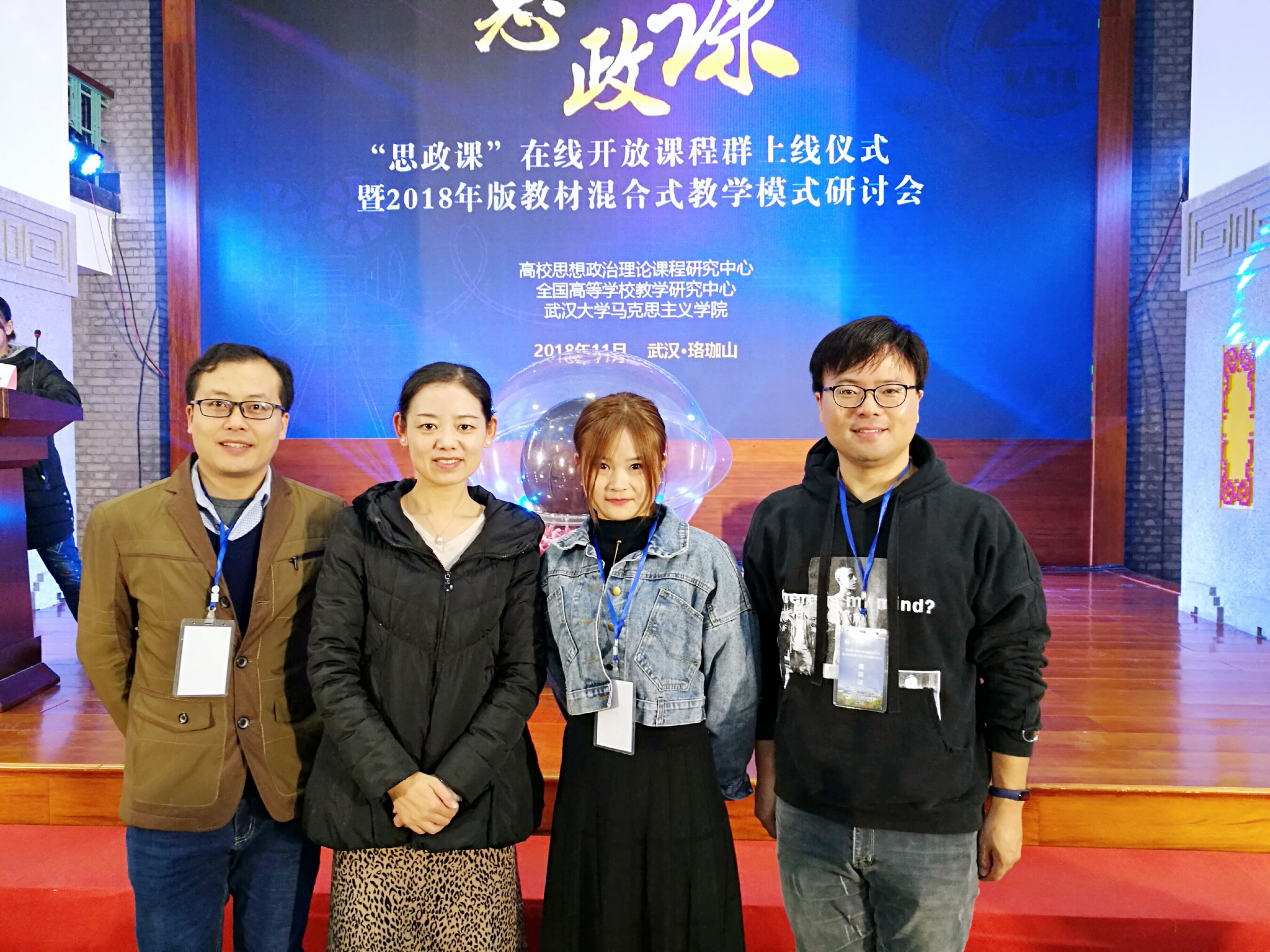 1月25日,永利官网思政部丁志春等四位教师参加了在武汉大学举行的“思政课”在线开放课程群上线仪式暨2018年版教材混合式教学研讨会。
