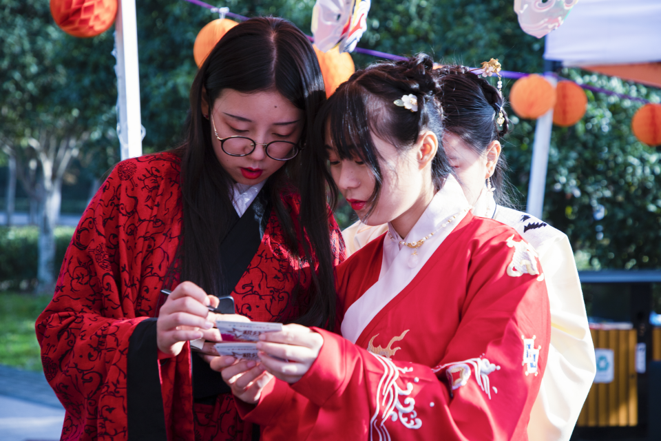 11月28日下午,由校团委主办、信息工程学院团委承办的第十六届校园文化艺术节之“游古穿今赏经典,古韵悠远驻心间”传统文化游园会在北校区励志广场举行,现场近200名师生参加了本次活动。