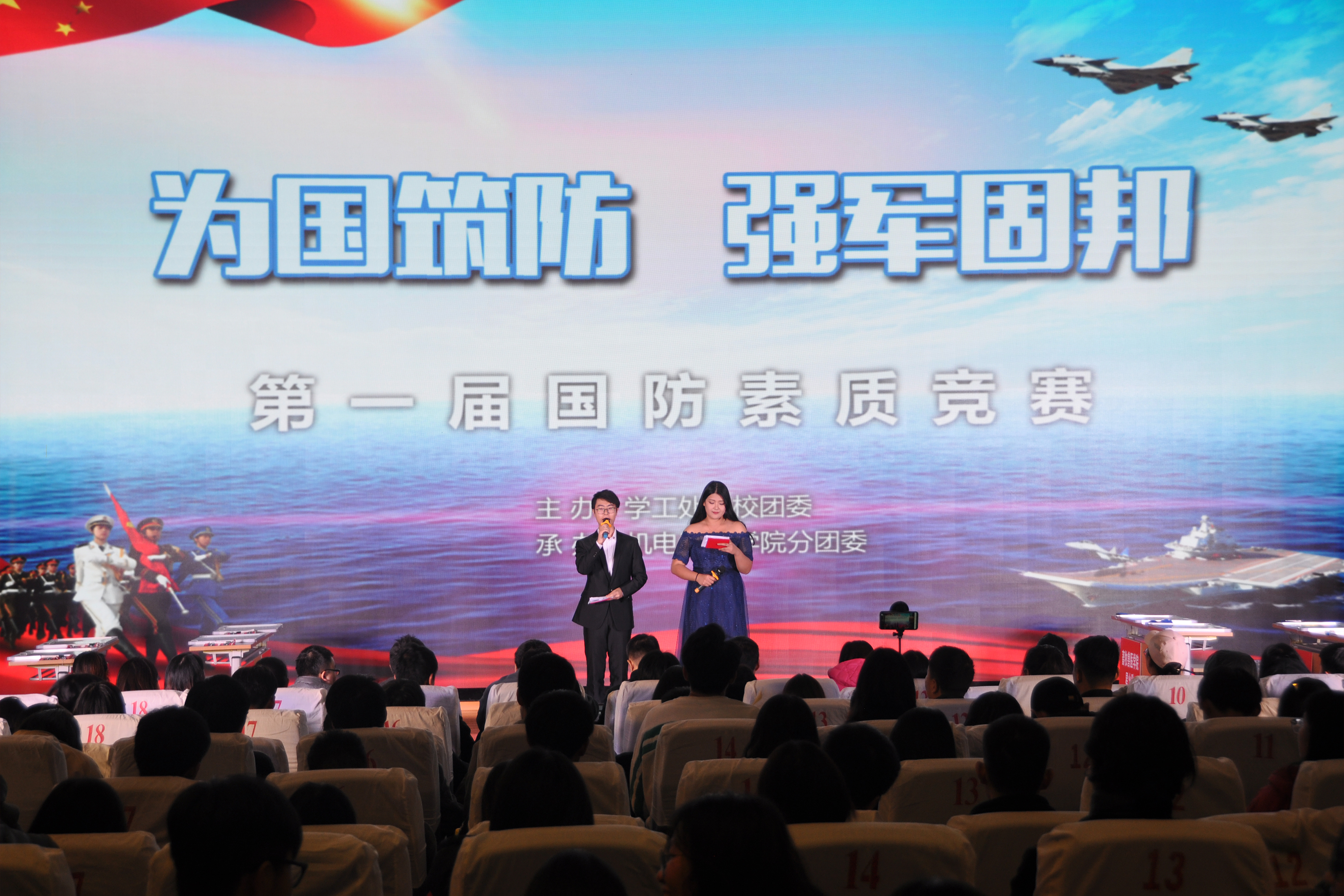 为增强大学生国防观念,弘扬爱国精神,12月2日晚,由学院学生工作处处、团委主办、机电工程学院团委承办的第十六届校园文化艺术节之首届国防素质竞赛活动在图书馆报告厅隆重开幕。中国人民武装警察部队句容中队队长周海宸上尉应邀出席本次活动。