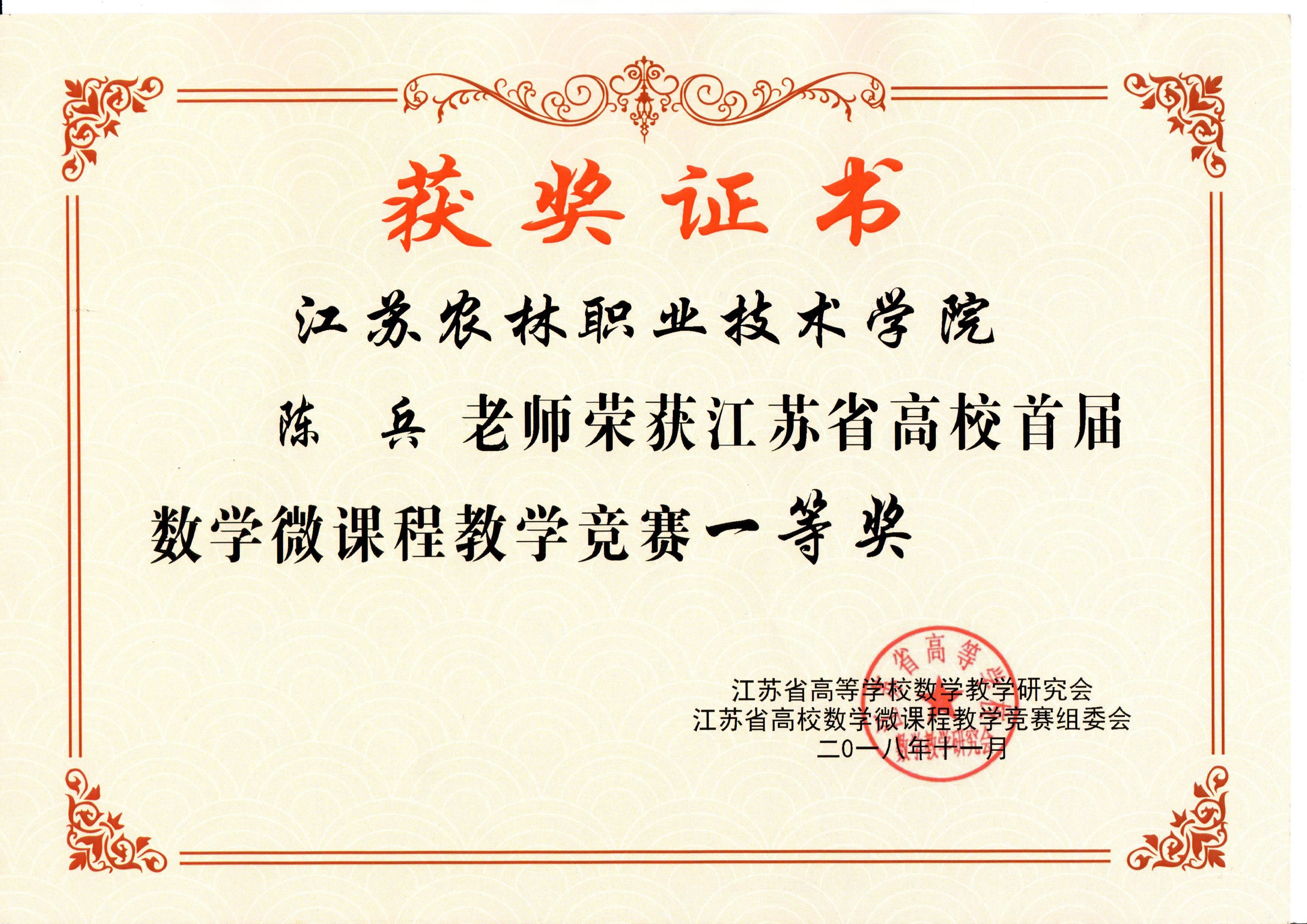 12月7日至9日, 在2018年江苏省高等学校数学教学研究会年会暨江苏省高校首届数学微课程教学竞赛颁奖会上,永利官网陈兵老师荣获江苏省高校首届数学微课程教学竞赛一等奖。