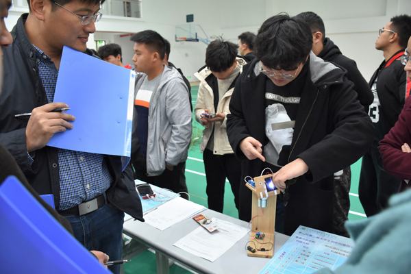 12月10日,茅山校区举办了第二届创新创意大赛,本次大赛以“创青春 新时代”为主题。 通过前期准备和策划,本次大赛共收集作品33件,在校区体育馆展出。评审现场,有创造发明的电子产品、有生动实用的机械产品、有充满文化底蕴的茶艺作品,有奇思妙想的手工创作。最终《可伸缩电动摘果器》、《一种光源自动追踪的太阳能发电装置》、《生态鱼缸·水冷系统》三个作品荣获本次大赛一等奖。