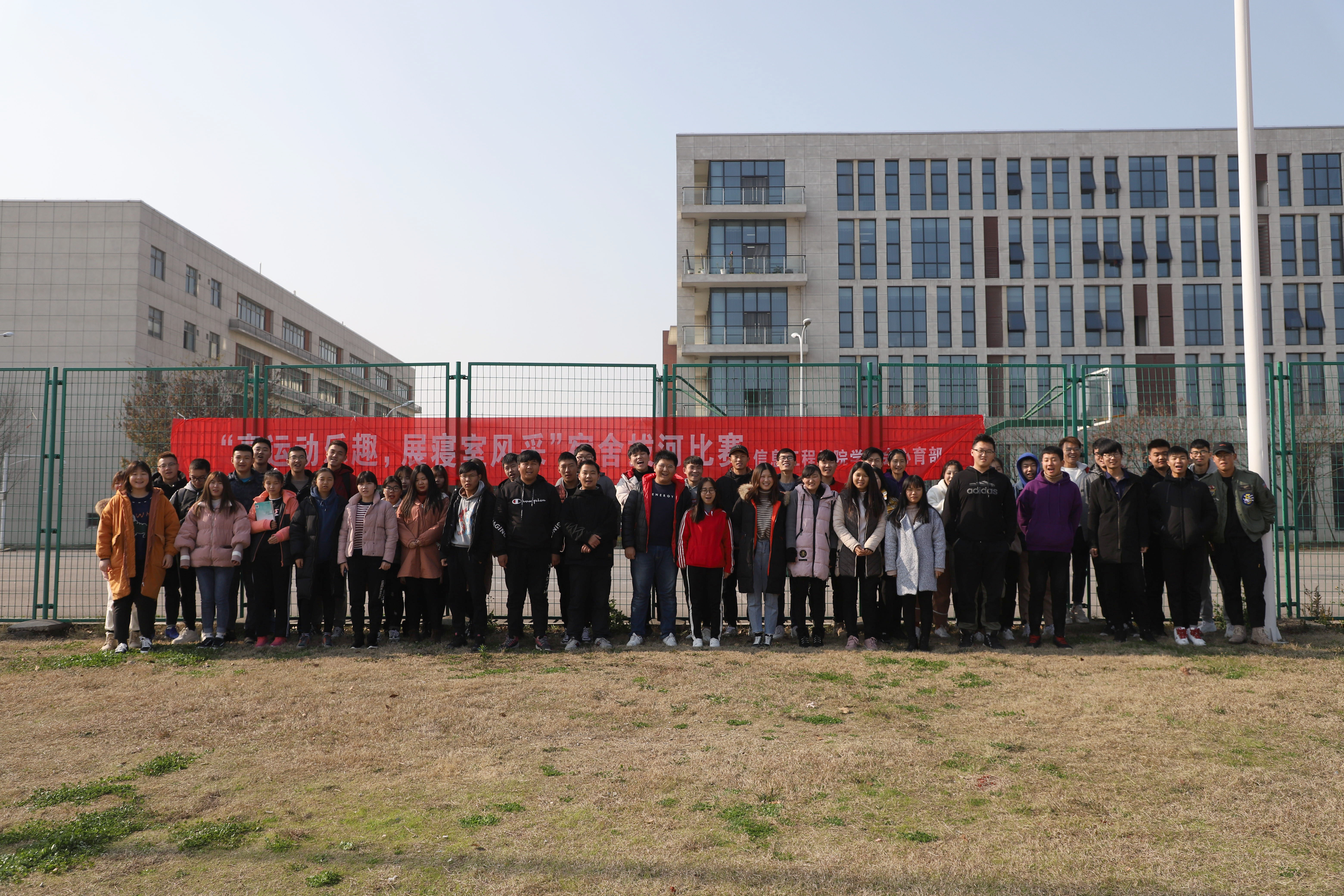 信息工程学院心育部于12月18日下午在北校区操场开展了“享运动乐趣、展寝室风采”宿舍拔河比赛。该院17、18级全体宿舍参与了比赛。
