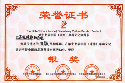 永利官网草莓综合示范基地生产的红颜、宁玉等两个草莓品种参加全国精品草莓擂台赛,在来自全国65个品种、700余份样品中斩获两个奖项,其中选送的宁玉品种在精品草莓擂台赛活动中荣获金奖,红颜获得银奖。