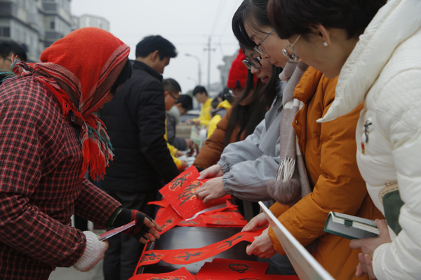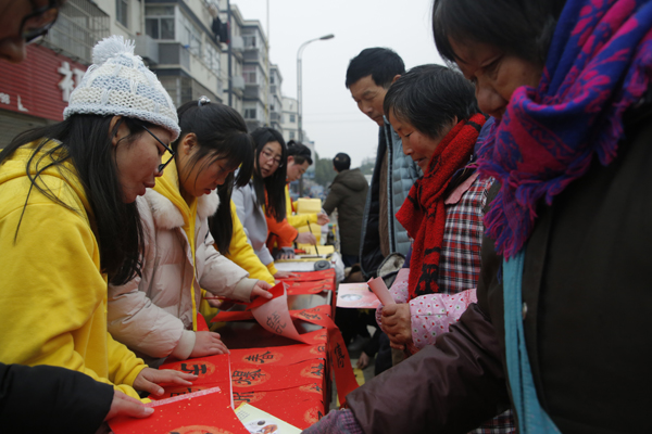 活动现场,散发着清新墨香的喜庆大红春联展现在人们眼前,一幅幅书法作品充满了浓浓的年味,大家一边欣赏书法作品,一边品评春联寓意,现场一片欢乐的景象。前来义诊的群众在桌前排起了长队,医护人员发挥扎实的专业功底,耐心细致,尽职尽责,他们的服务态度和服务质量受到大家的称赞。志愿者还对大家日常保健、常见病、多发病和常服药等方面进行了指导,帮助大家掌握基本的健康保健知识和技能,并把常备药品发放到群众手中。最后,志愿者们还来到农户家中,不仅送去了春联、药品,还送去了新年祝福。