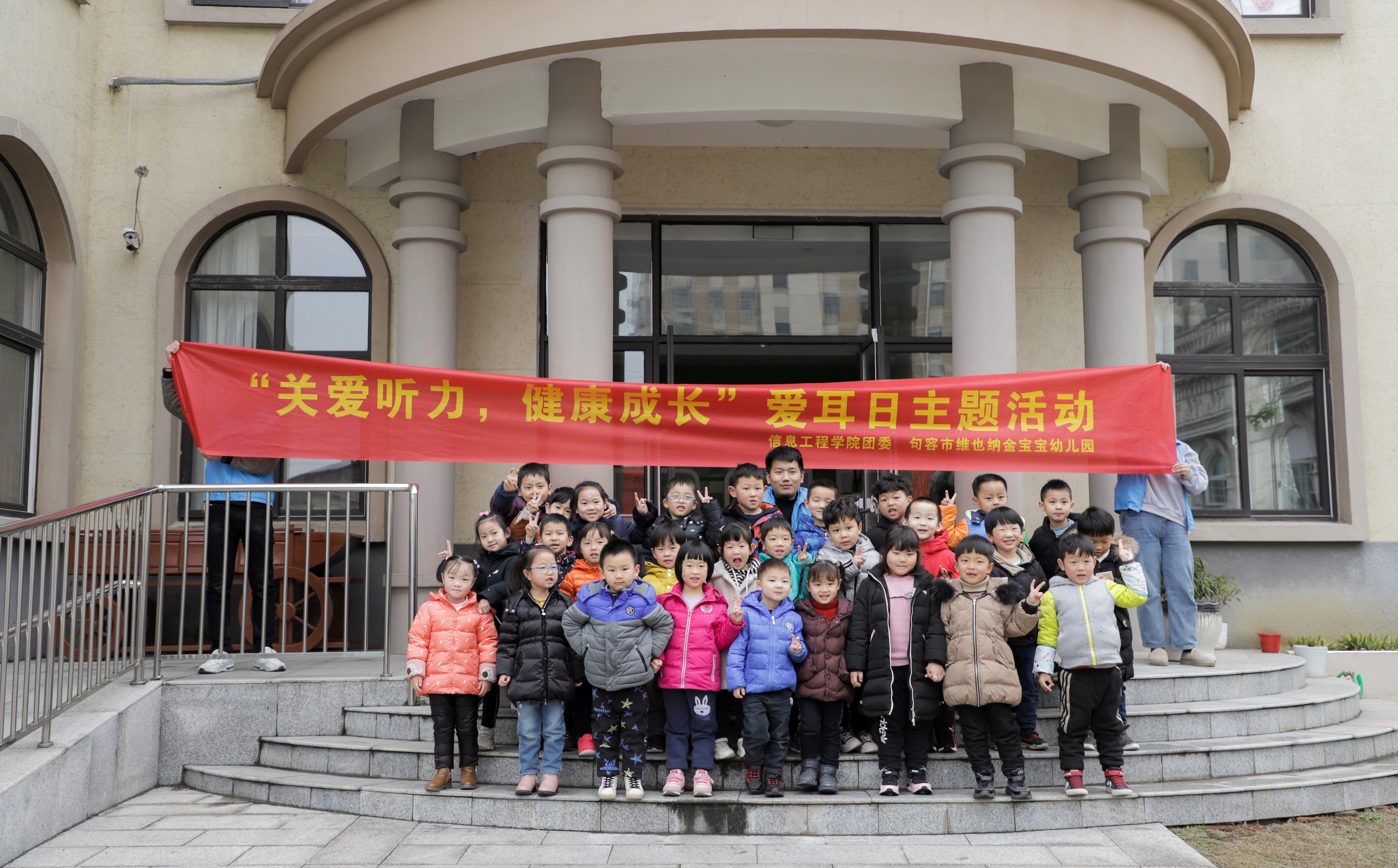 新学期开始,信息工程学院团委组织志愿者在2月14-27日期间分别在走进句容市郭庄镇虬北村和句容市维也纳金宝宝幼儿园开展“开学第一课、志愿我先行”志愿服务活动,志愿服务以“关爱听力、呵护成长”爱耳护耳为主题,120名儿童参与了此次活动。