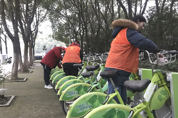 早上六点,志愿者们来到街头,为环卫工人送上一杯热水、一份爱心早餐,并帮助环卫工人清扫垃圾, 亲身体验环卫工人日常工作。清扫街道后,志愿者们来到共享单车摆放点,将这些小车擦得干净明亮,焕然一新。