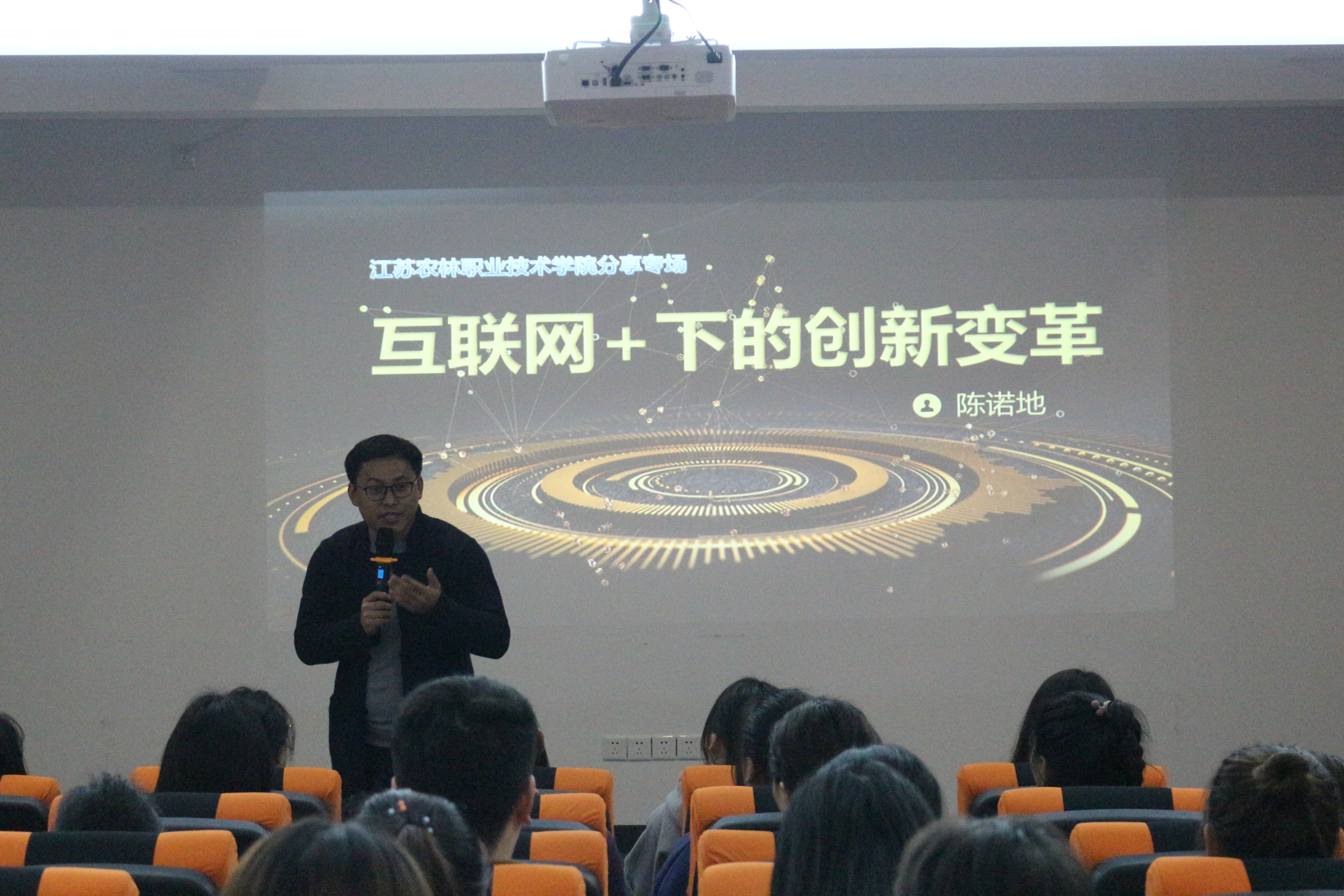 3月27日下午,茶与食品科技学院在新禾创客空间207开展名企工匠进校园系列活动之“互联网+背景下创新变革”分享会。分享会由华付商学院院长兼战略导师、2009届优秀校友陈海波主讲,该院各互联网+项目组成员参加了本次活动。