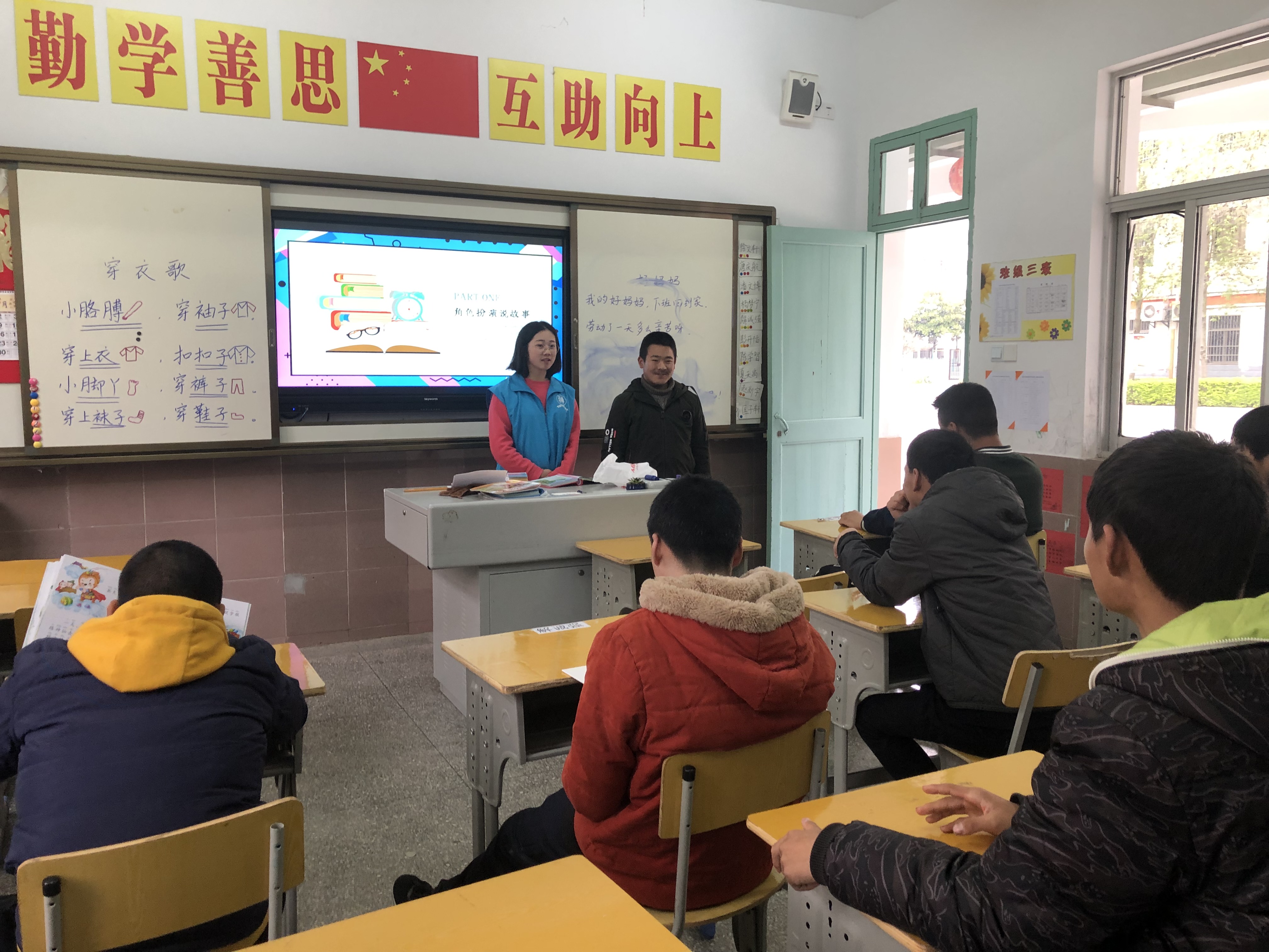 志愿者们带着事先排练好的绘本故事,邀请博爱学校的孩子们一起互动表演,用演绎的方式带着聋哑儿童一起走进童话世界领略读书的美好,极大地培养了他们对读书的兴趣。