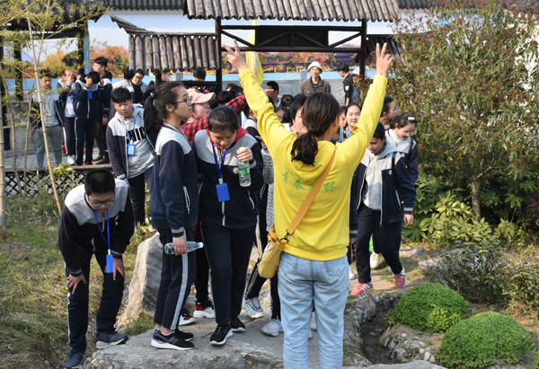 16个班级分为8个小分队,各由4名志愿者带领。大学生志愿者化身为“导游”,从不同的线路带领中学生游览了茶博园天下第一壶、百茶园、茶文化长廊等景点。在茶道广场,各二级学院团委带来了形式多样,丰富多彩的社团展示,音乐社团歌声悠扬洋溢校园,书法社团的同学们泼墨挥毫、书画刚劲有力,飘逸洒脱,梓匠工坊家具社简约的设计理念,细腻、精致的做工,给现场同学们展示了时尚魅力诱惑的艺术品,各个社团极具特色的展示吸引了老师和学生的广泛关注。活动过程中,大学生志愿者还组织华阳中学各班级开展形式多样的游戏,现场一片欢声笑语。