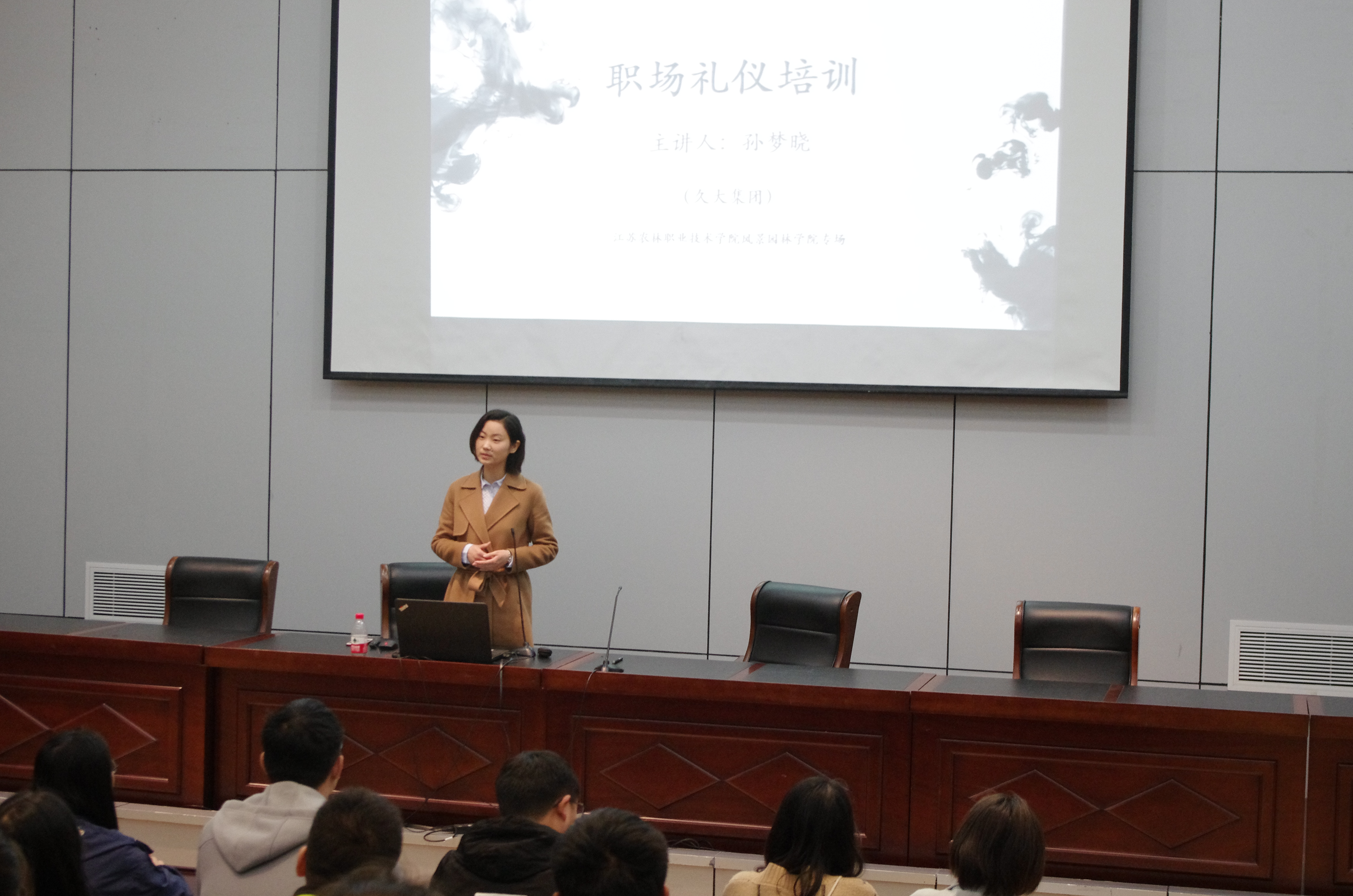 4月12日下午,风景园林学院开展“与优雅邂逅”职场礼仪知识讲座,作为“圆梦青春·大学生涯领航季”系列活动之一,本次活动邀请了久大产业投资集团孙梦晓经理作为主讲人,为在场100多名师生呈现了一场关于职场礼仪的精彩讲座。