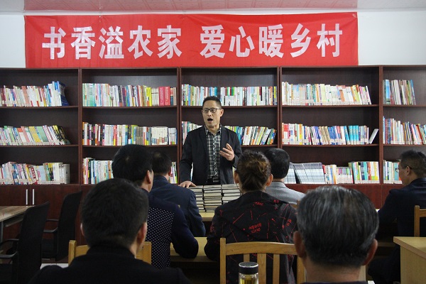 活动中,图书馆张田林馆长首先介绍了此次活动的目的,他希望捐赠的著作在乡村图书馆中能够与更多的读者见面。经济与人文学院副院长孔祥静老师、团委傅浩兰老师以及青年志愿者们为现场的村民诵读了《面朝大海春暖花开》 《雨巷》等经典读物。最后,华阳街道社区党总支书记朱大金向捐赠图书的学院和师生表示了感谢,表示相对于捐赠图书本意而言,此次活动对于大家的精神鼓励和鞭策更有意义。