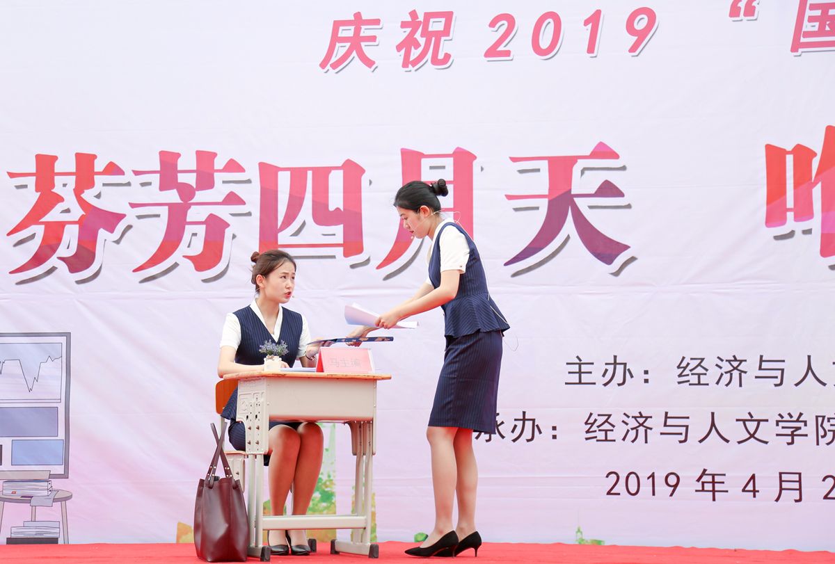 系列活动共分成三个部分,暮春日晡行:4月22日下午,所有文秘专业在校学生,身着职业装,迈着自信的步伐,环绕校园行走,形成了一道靓丽的风景线;菁人“月”读:4月23日晚7点,在经济与人文学院副院长孔祥静老师的主持下,师生们共读经典,积极分享自己读过的名篇佳作,畅谈“读书辩证之法”;“唯”秘之风采:4月24日下午17、18级文秘专业学生和专业老师们共聚一堂,同学们倾情演绎了走秀、歌舞、小品、秘书工作情境展示等形式多样的精彩节目,精彩纷呈的节目一次次赢得了现场观众的阵阵掌声。