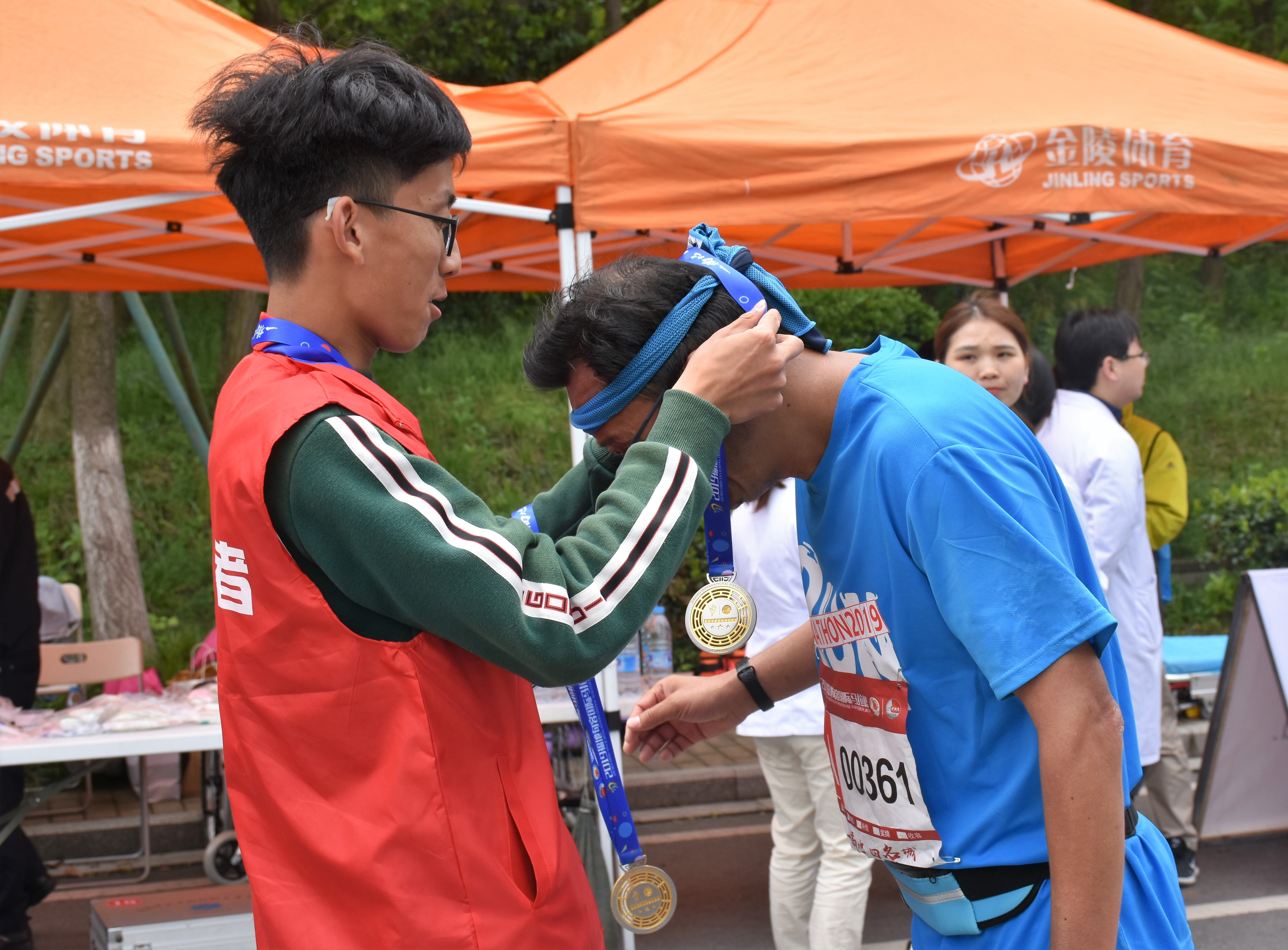 所有志愿者在五点半集结完毕,有序乘车前往各自的工作岗位,他们分别在安保检查、后勤服务、各个赛段补给点、赛道起点、迷你终点、半程终点、全程终点、物资发放等多个服务组各尽其职、各司其能,为赛事贡献着自己的青春力量,圆满完成了各项工作。志愿活动受到了主办单位、参赛选手及现场观众的高度肯定与赞扬。