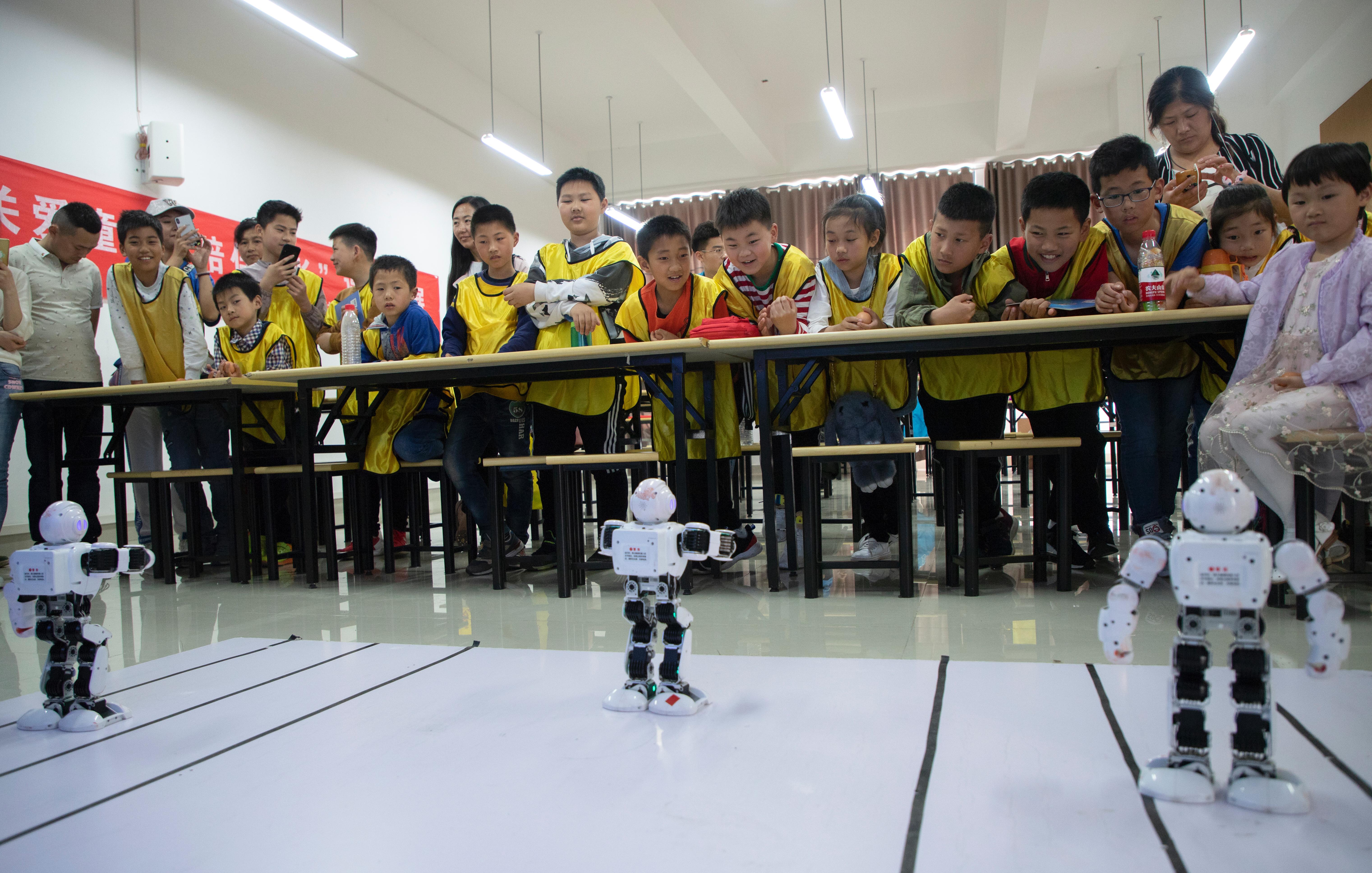 本次活动主要分为“家长沙龙”“沙盘游戏”“法院小课堂”“亲子游戏”和“科技启蒙课堂”五个环节。信息工程学院“太阳花”假日课堂10余名志愿者来到了句容市未成年人指导中心,陪同孩子们一起做起了沙盘游戏,帮助他们认识自我,增进与父母之间的沟通交流;随后,志愿者们带着孩子们来到了句容市人民法院,参观了青少年法庭,学习了相关青少年保护法律知识;下午,志愿者们将假日课堂搬进实验室,给他们讲授了一堂科技启蒙知识课。互动式的机器人知识讲解,融入机器人舞蹈,引起孩子们对机器人极大的兴趣;孩子们兴高采烈地带着VR眼镜看穿越机特技飞行,科技启蒙课在无人机桨叶的轰鸣声中结束。