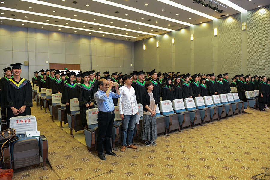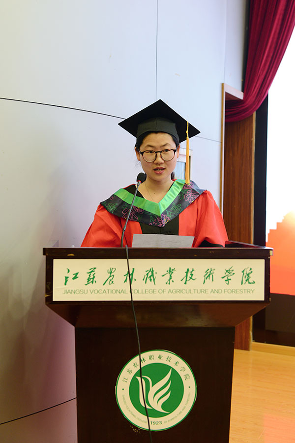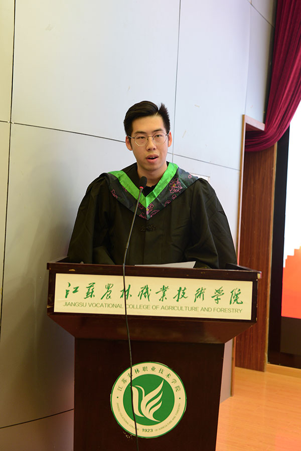 典礼在庄严雄壮的国歌声中拉开帷幕。曹仁勇副校长代表学院首先致辞,他饱含深情地与毕业生们同叙在校期间的学习和生活,表达了对他们的良好祝愿。同时,代表母校对毕业生们提出了殷切期盼!毕业生代表岳子豪同学在发言中倾述着对母校的不舍之情和对未来的期待。教师代表曹丽娜老师分享了任教以来的师生情,并送上自己美好的祝愿。南京林业大学风景园林学院园林植物系主任杨秀莲、家居与工业设计学院家具设计系主任苗艳凤分别宣读了毕业批复决定、学位授予决定等相关文件。主席台导师为毕业生代表援正流苏、颁发学士学位证书,并合影留念。