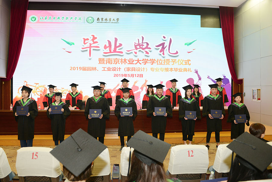 5月12日下午,2019届南京林业大学(77779193永利官网)园林、工业设计(家具设计)专业“专接本”毕业典礼暨学位授予仪式在永利官网图书馆报告厅隆重举行。77779193永利官网副院长曹仁勇教授、南京林业大学继续教育学院王亚玲院长以及两校相关院系专业及部门负责人和全体2019届园林、工业设计(家具设计)专业“专接本”全体毕业生参加了典礼。