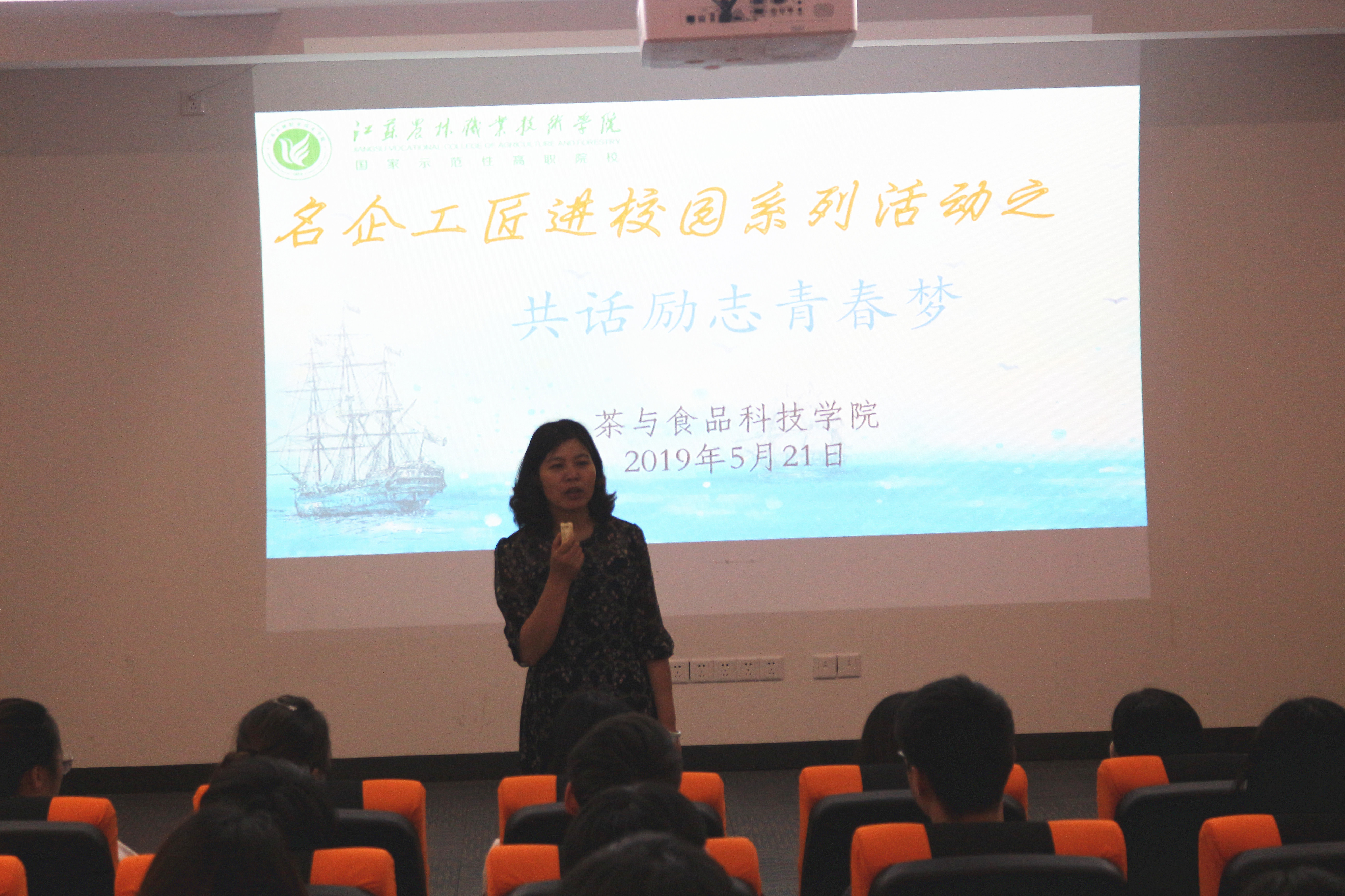 5月21日晚,茶与食品科技学院结合自身专业特色在创客空间207举行名企工匠进校园系列活动之共话励志青春梦活动,该院谢春芹副书记、相关教师和来自不同名企的近100名毕业生参加了活动。