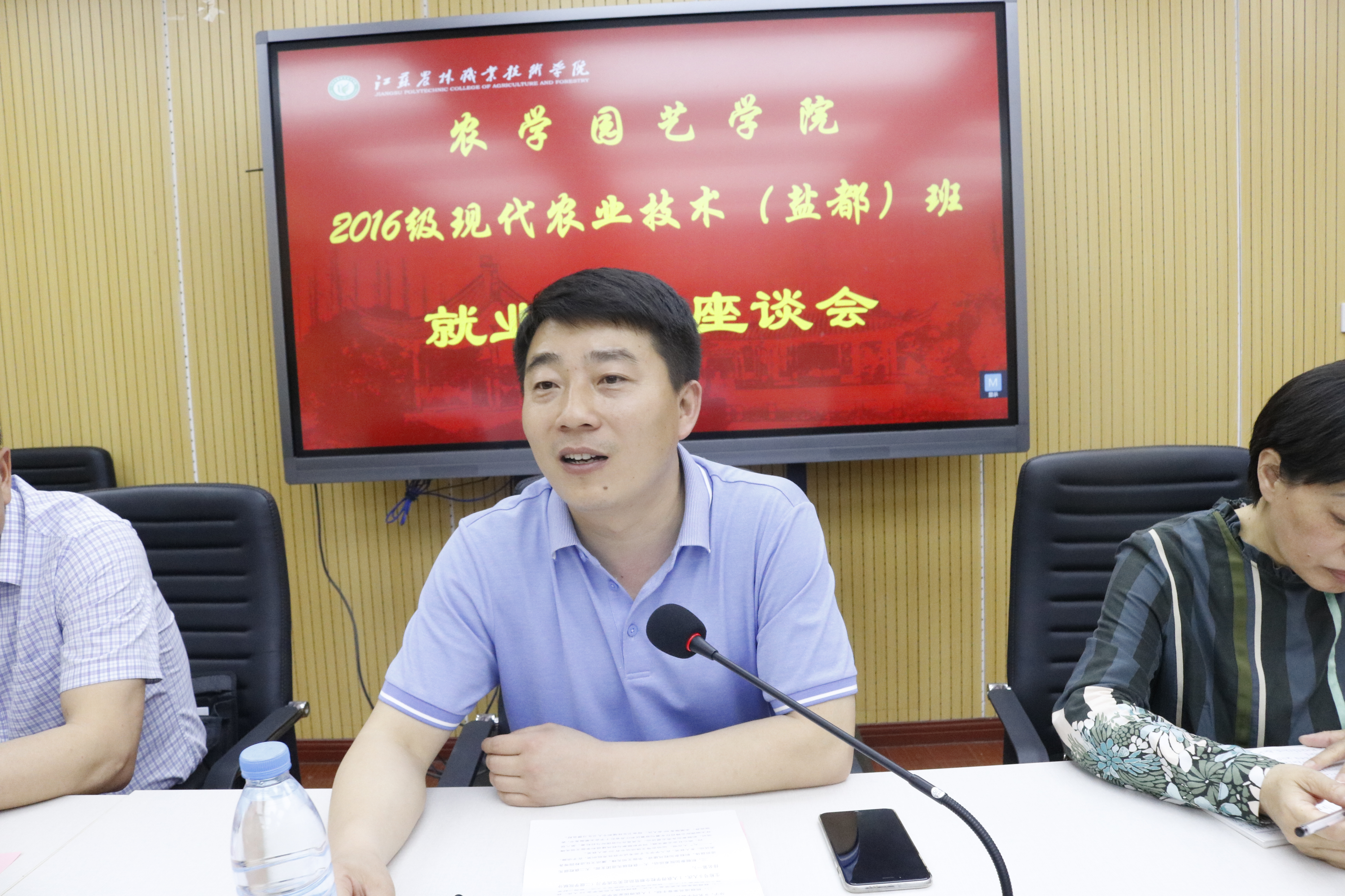 5月25日晚,农学园艺学院2016级现代农业技术(盐都)班就业工作座谈会在研发楼二楼会议室举行。盐都区农业农村局副局长陈志清、科长杨加祥及农学园艺学院主要负责人、辅导员、班主任及2016级现代农业技术(盐都)班全体同学参加了会议。