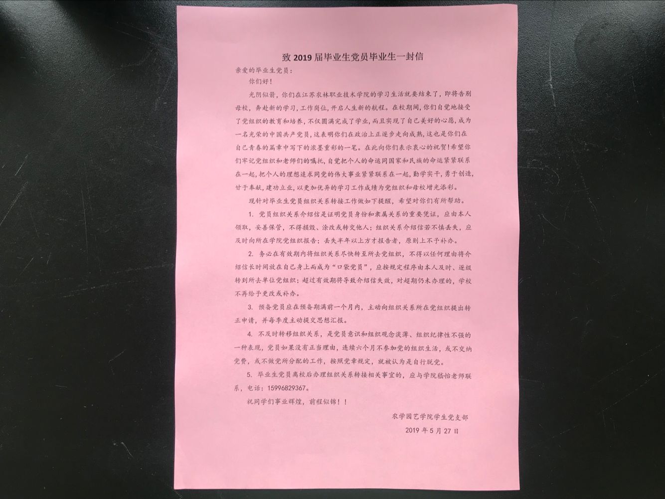 活动中,学生党支部书记嵇怡为每位毕业生党员发放《致2019届毕业生党员一封信》,并细致讲解组织关系结转流程、注意事项等内容,耐心回答党员学生提出的问题,帮助毕业生党员理清党员组织关系转接工作。随后,为所有党员颁发了“党员身份证”,希望全体党员牢记党员身份,在以后的工作学习中继续发挥先锋模范作用。活动最后重温入党誓词,全体毕业生党员面向党旗庄严宣誓,不忘初心、牢记使命。