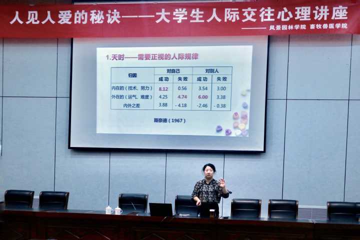 5月29日,由风景园林学院和畜牧兽医学院联合主办的大学生人际交往心理讲座在研发楼报告厅举行。本次讲座邀请了江苏大学心理健康教育中心副主任,国家注册心理咨询师陆菁教授主讲。