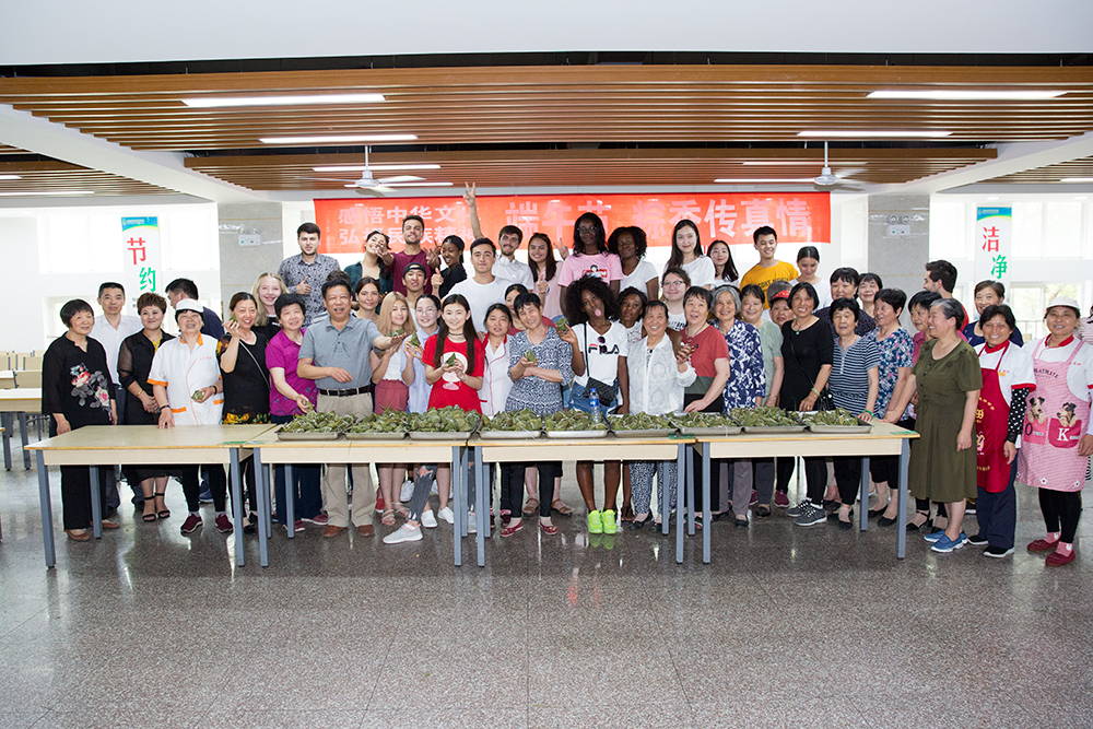 退休老教师手把手教留学生们包粽子,让同学们体会到了包粽子的乐趣。活动中,老教师们一边包粽子一边给留学们讲述中国古代爱国诗人屈原的故事、包粽子的由来、端午节传统习俗等,让留学生们感受到了中国传统节日浓郁的文化气息,感悟到了中国文化的博大精深。活动现场,师生互动,气氛活跃,给大家留下了难忘的印象。