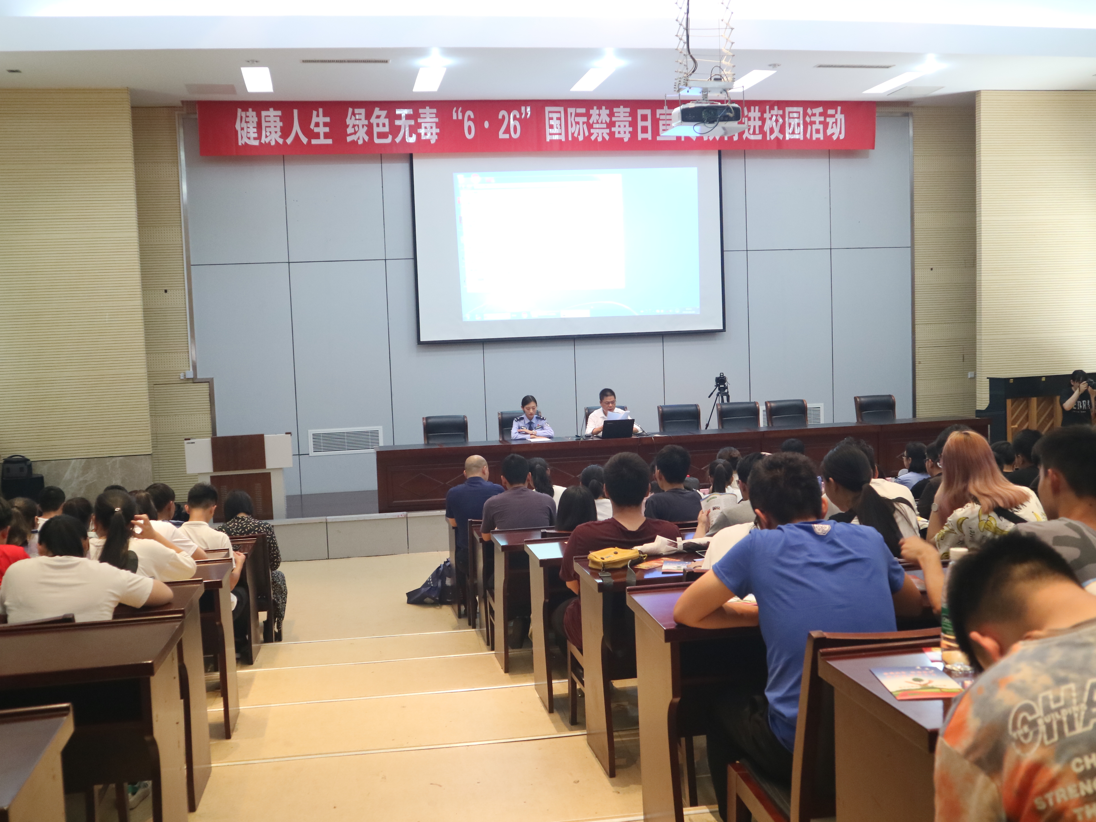 在6·26国际禁毒日来临之际,为了有效提高大学生们远离毒品的意识,6月5日下午,马克思主义学院联合句容市司法局、句容市启航未成年人保护工作室在研发楼报告厅举办了一场禁毒宣传教育活动。活动中,由句容市女子戒毒所谢子馨警官向学生们做《禁毒形势教育》讲座,并带领学生们观看了禁毒宣传教育视频,向学生发放禁毒宣传资料,接受现场法律咨询。