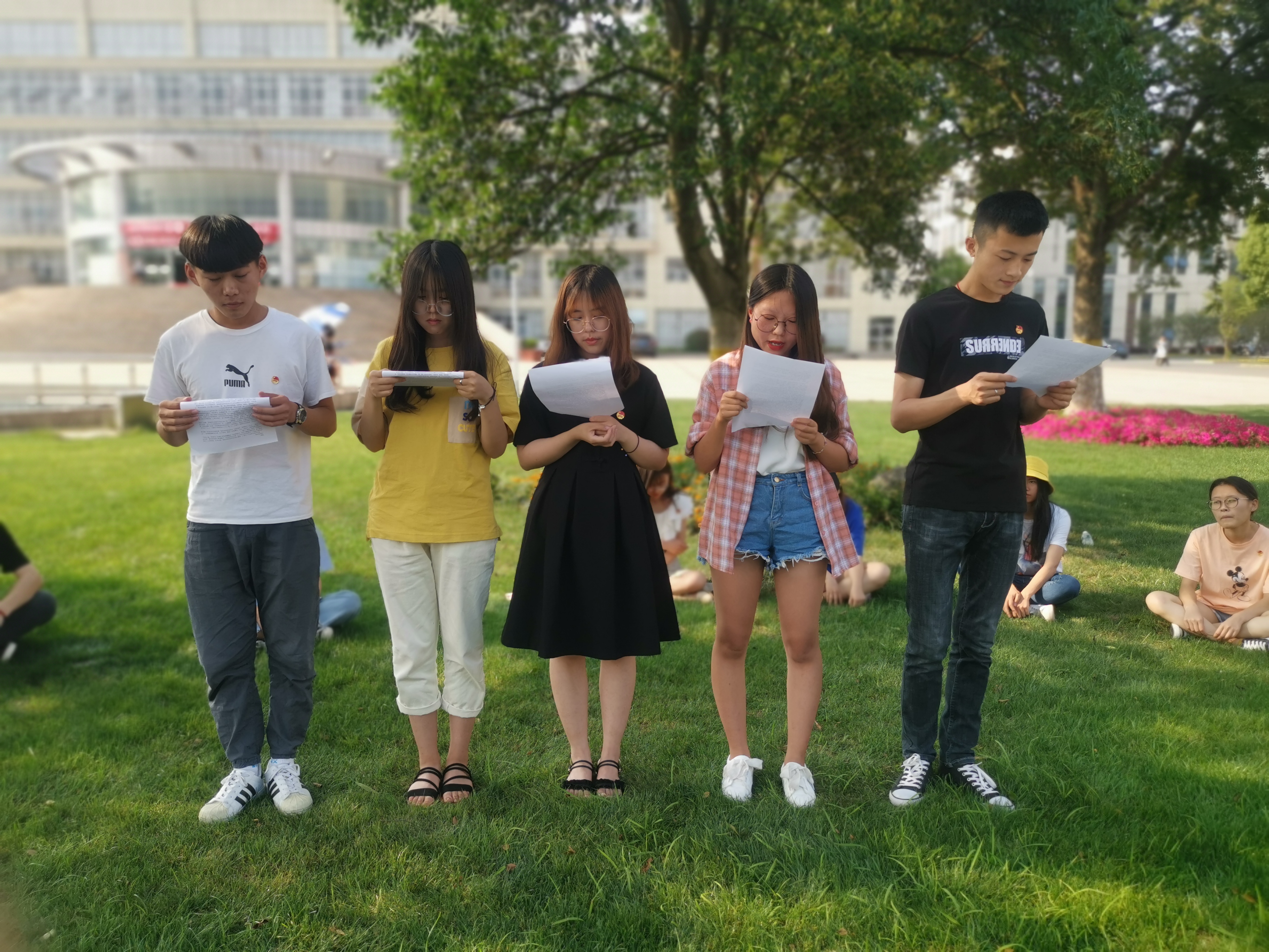 6月14日下午,风景园林学院团委的部分学生代表在图书馆前的草坪上,自发组织了关爱父亲“五个一”活动,即用一句吐槽父亲的话,一首朗诵父亲的诗,一首歌唱父亲的歌,一个发给父亲的红包,一句送给父亲的祝福。