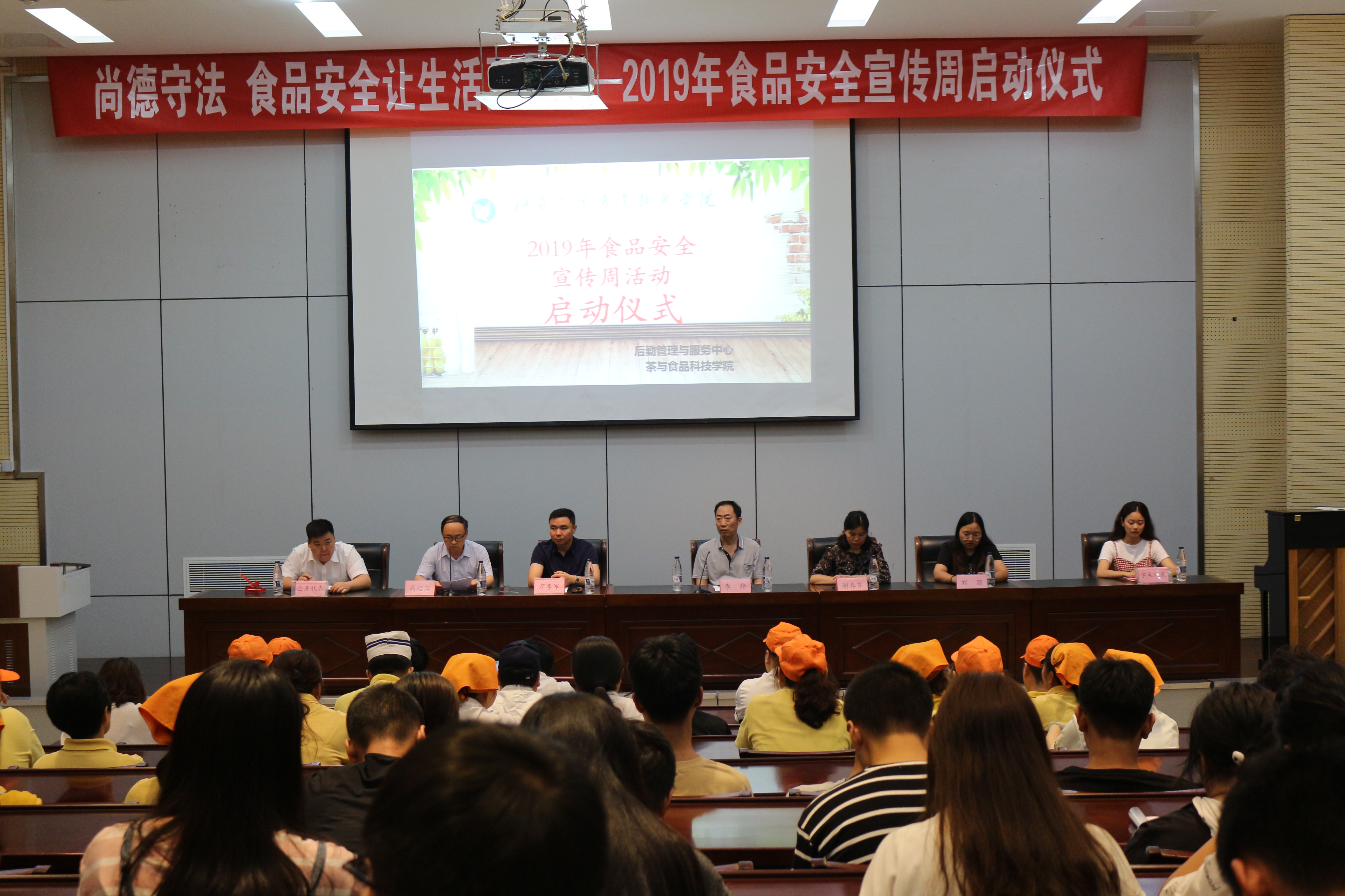 6月20日,茶与食品科技学院联合后勤管理与服务中心在研发楼报告厅举办2019年食品安全宣传周启动仪式。茶与食品科技学院、后勤管理与服务中心有关领导、膳食科员工、学生代表共计130余人参加了此次启动仪式。