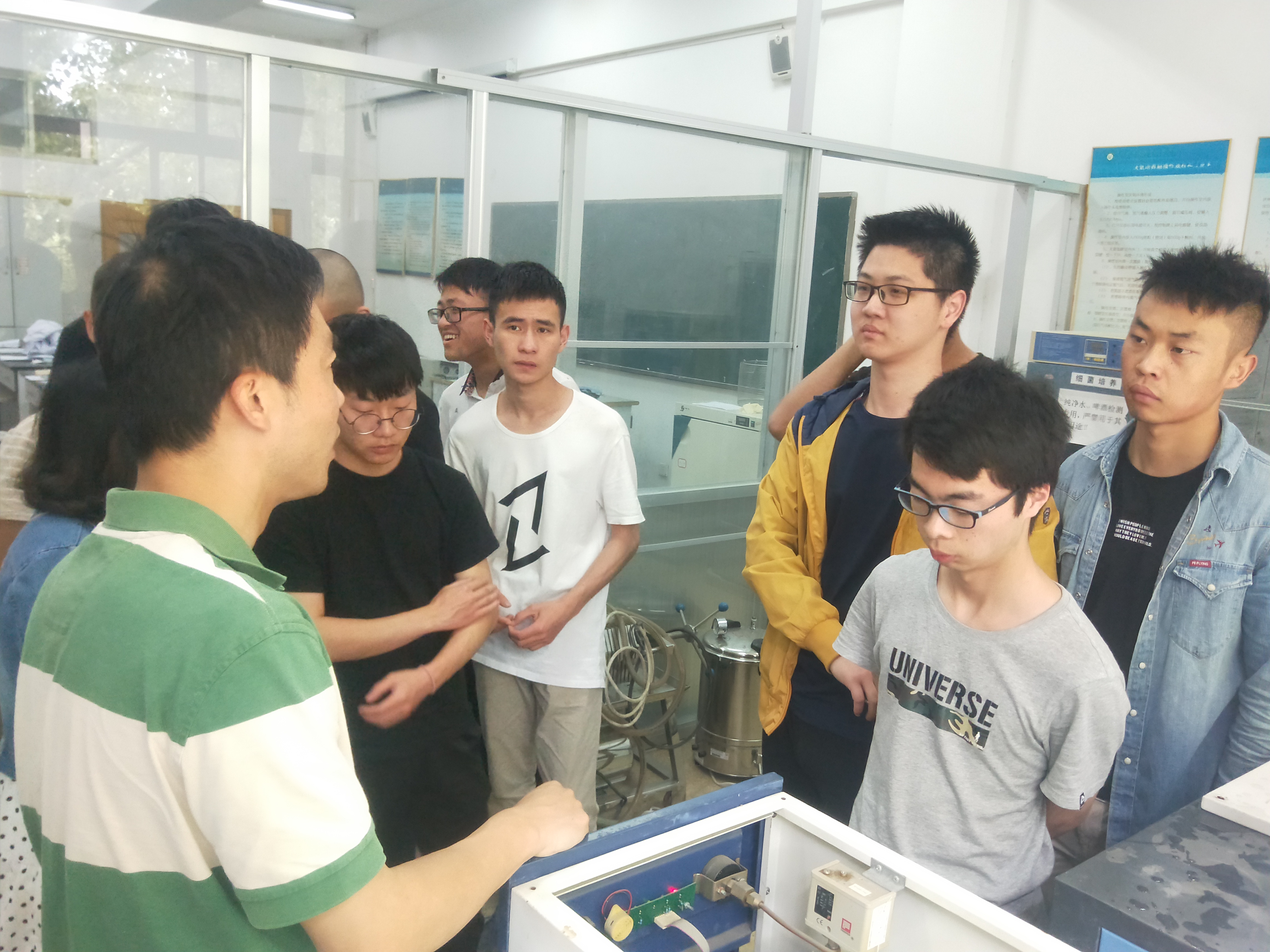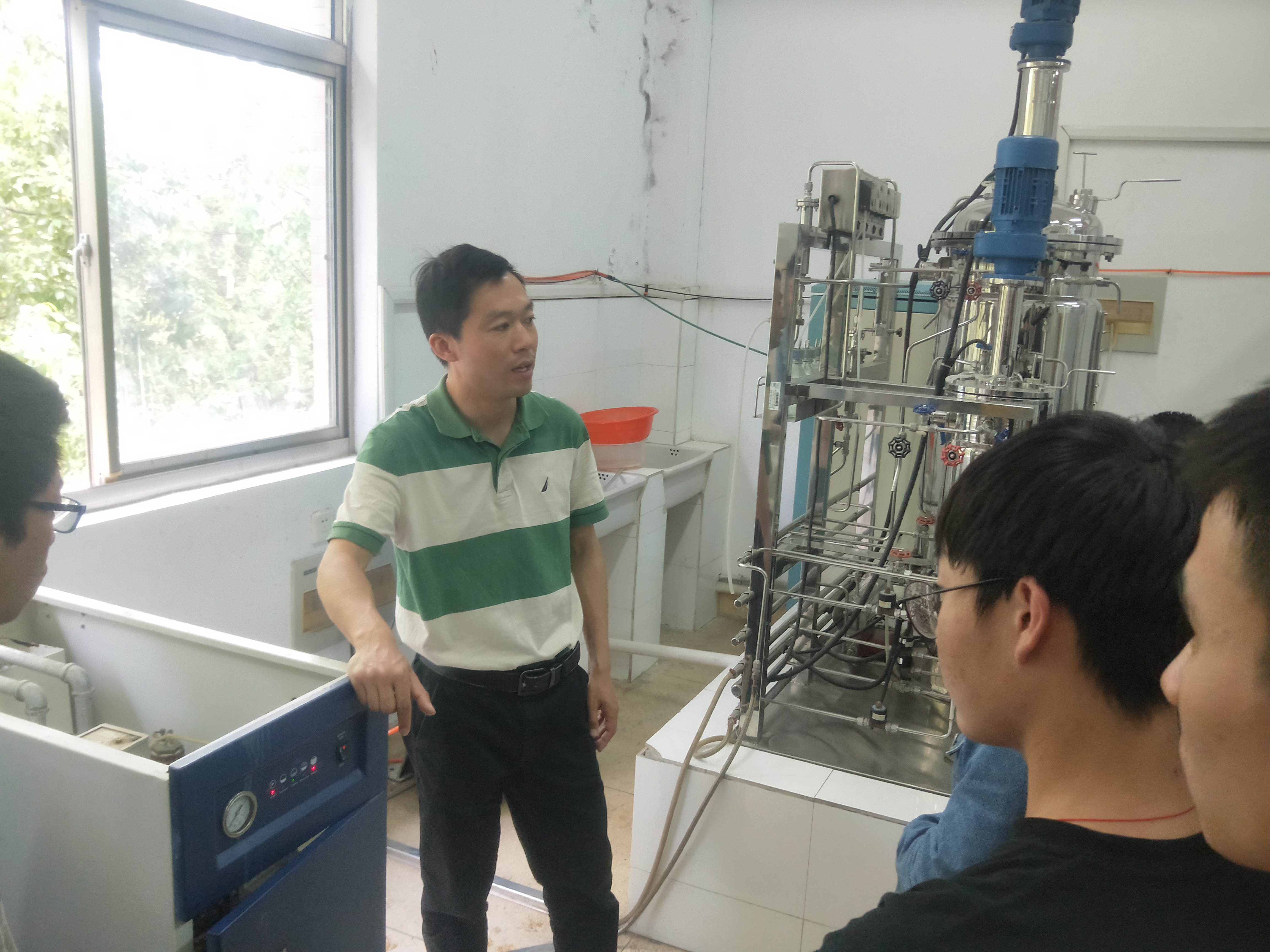 发酵罐指工业上用来进行微生物发酵的装置,能耐受蒸汽灭菌,有一定操作弹性,内部附件尽量减少,物料与能量传递性能强,并可进行一定调节以便于清洗、减少污染,适合于多种产品的生产以及减少能量消耗。活动中,发酵社团指导教师黄小忠对发酵罐各部分功能进行了讲解,并对发酵罐的使用步骤进行了介绍,邀请了数位同学进行了实际操作,指出了同学们操作不规范的地方,同时对存在的危险因素着重强调。此次活动,加深了同学们对发酵罐的认识,丰富了同学们的课余生活,也加强了团队的凝聚力。