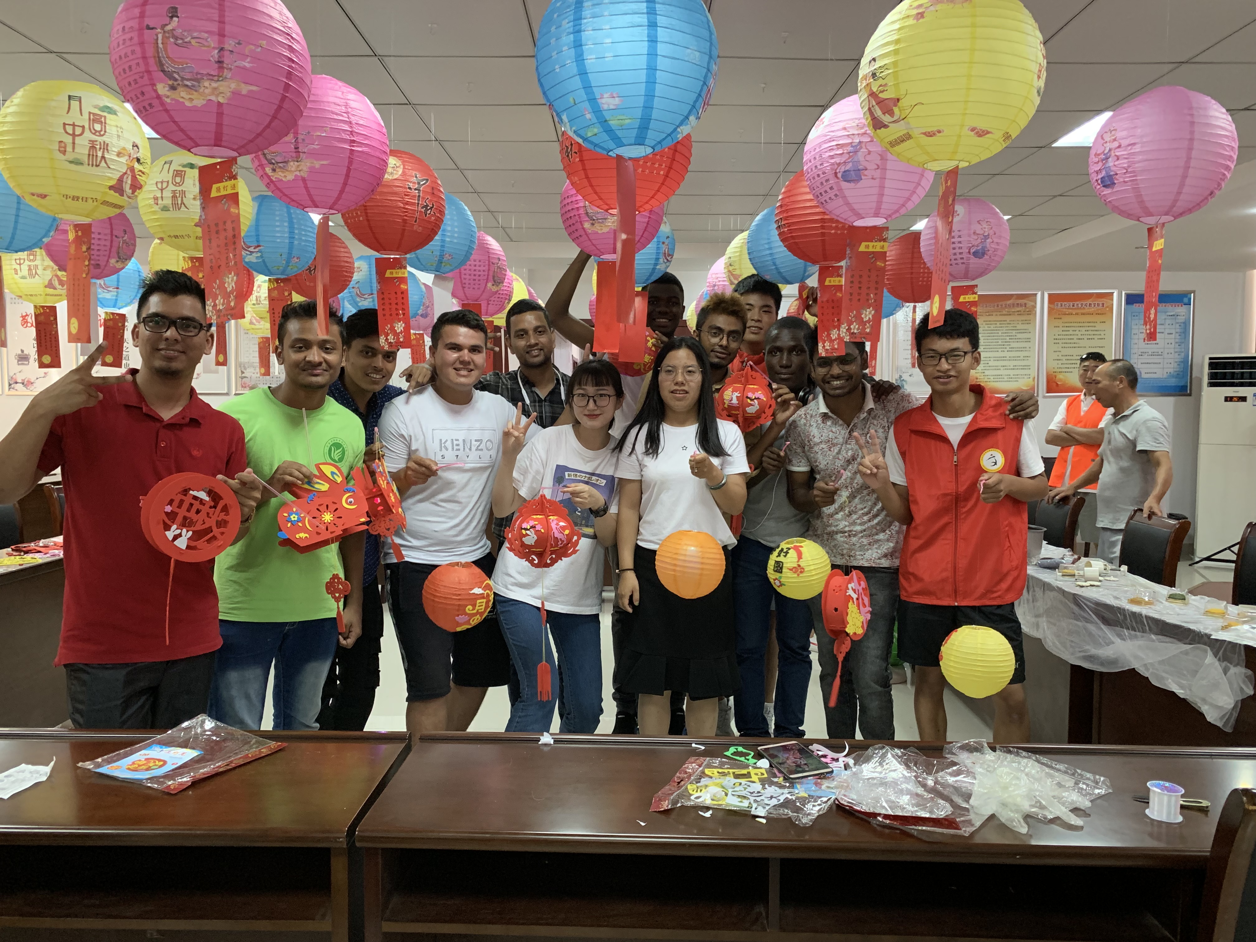 9月11日下午,机电工程学院志愿者陪同来华留学生们,赴句容市崇明街道河滨社区开展“庆祝新中国成立70周年-海外留学生感受中国文化”活动。国际教育学院郭俊副书记(主持工作)、机电工程学院党总支李杨副书记受邀参加,和同学们一起共度佳节。社区居民和志愿者给留学生讲解了中秋赏花灯的由来,让留学生了解中国的传统文化。贴彩片、安装彩色灯、许下心愿。志愿者与留学生共同制作花灯,一盏盏漂亮的“嫦娥奔月”“月兔欢跑”小花灯在大家的巧手下诞生。捏面团,包馅料,收口,揉圆,压模……,在DIY月饼制作过程中,大家以传统美食为话题,聊起生活点滴,分享国内外的不同传统文化。最后,在志愿者的带领下,同学们将做好的月饼送给社区的空巢老人,大家一起吃月饼、赏花灯、猜灯谜,提前欢度中秋佳节。9月12日,机电工程学院还在现代农业装备中心举办新入院留学生见面会。精心安排了中国传统文化介绍、月饼分享等环节,让大家感受到了异国他乡的浓浓情意。留学生也献上了精心编排的舞蹈,将活动氛围推向了高潮。