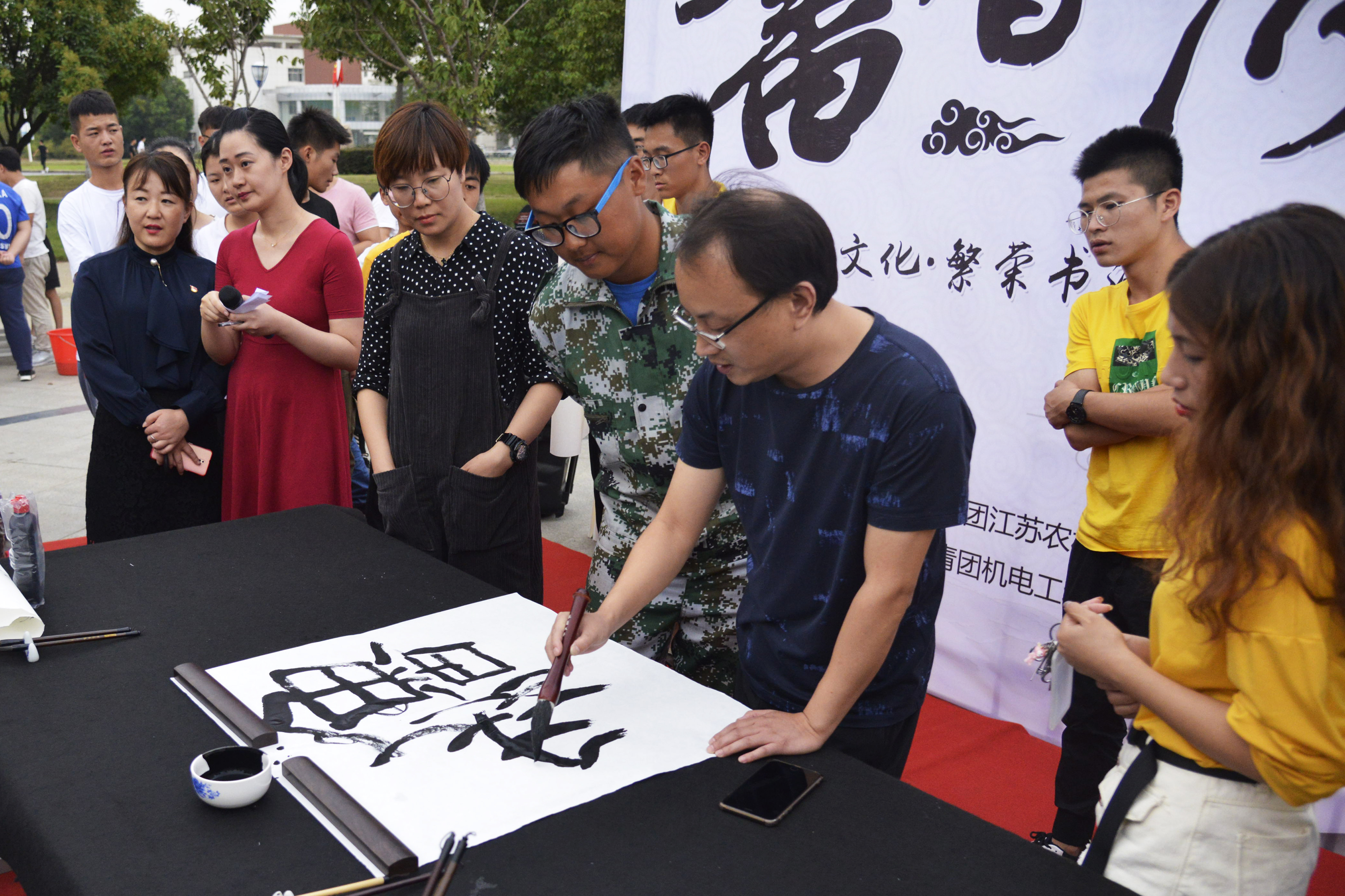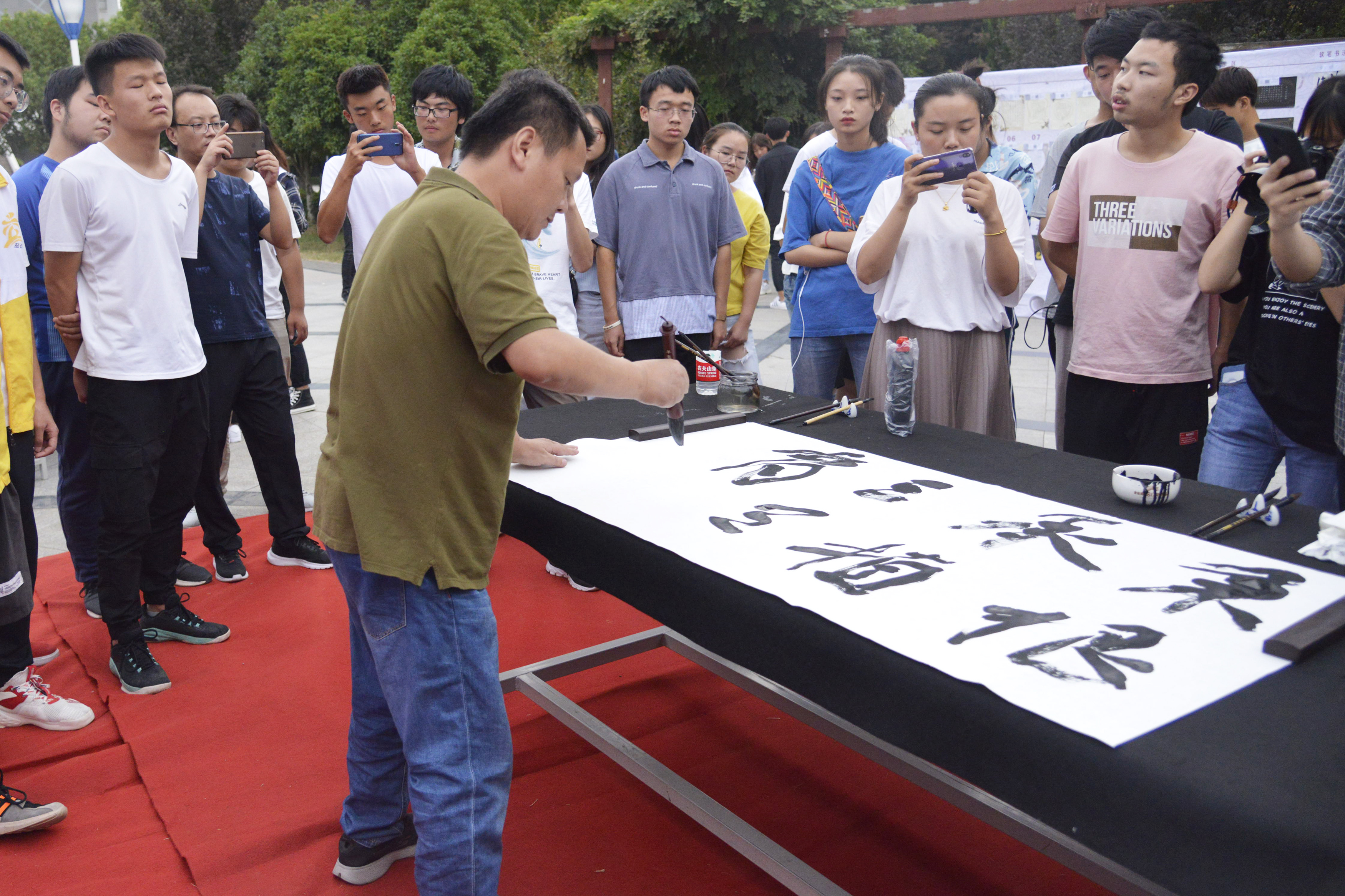 为迎接新中国70周年华诞,弘扬优秀的中华传统文化,繁荣书法艺术,在校园营造书香弥漫、墨色浸润的文化氛围,9月25日下午,由学院团委主办,机电工程学院团委承办的“书香浸润”书法大赛在励志广场举办。现场特邀镇江市书法家协会副主席许能俊、句容市九三学社主委林杏芳、句容市书法家协会副秘书长周龙俊、刘清和江苏书法家协会会员丁鹏校友担任比赛评委。