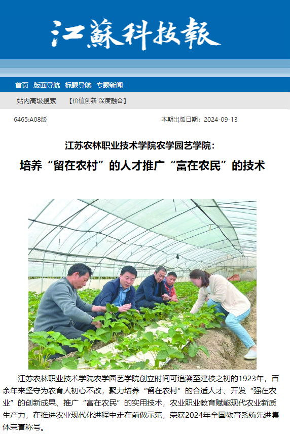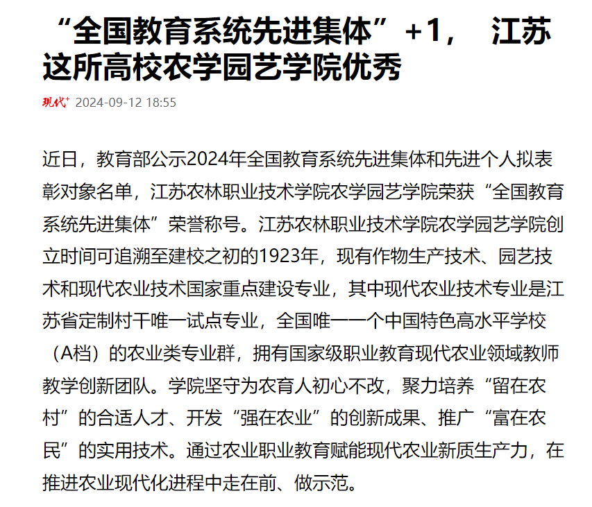 【现代快报】等报道农学园艺学院荣获“全国教育系统先进集体”荣誉称号。