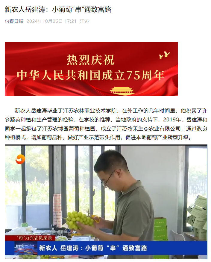 【句容日报】新农人岳建涛:小葡萄“串”通致富路